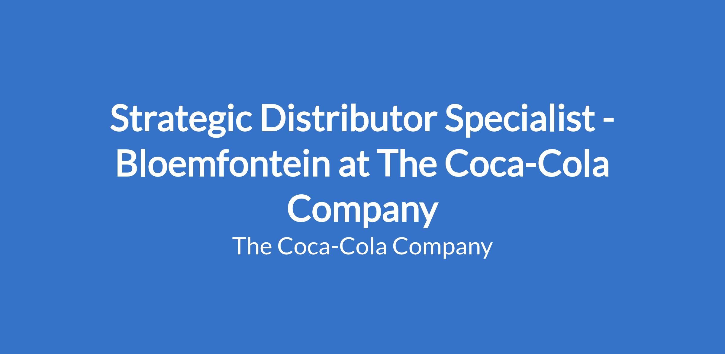 Strategic Distributor Specialist - Bloemfontein at The Coca-Cola Company