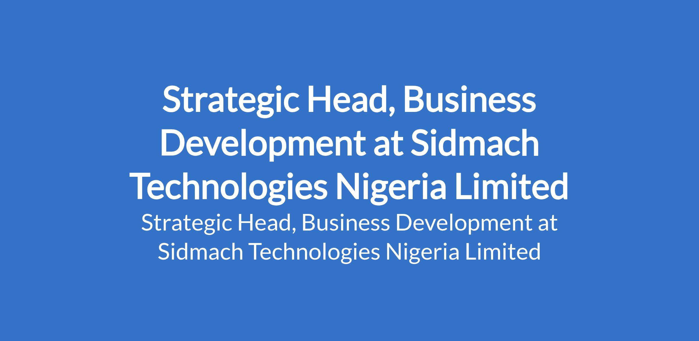 Sidmach Technologies Nigeria Limited is recruiting to fill the position of: Strategic Head, Business Development. The position is located in Ikeja, Lagos State. Interested candidates should possess an MBA or postgraduate qualification with 8+ years of experience in strategic business development, commercial strategy, or growth roles.