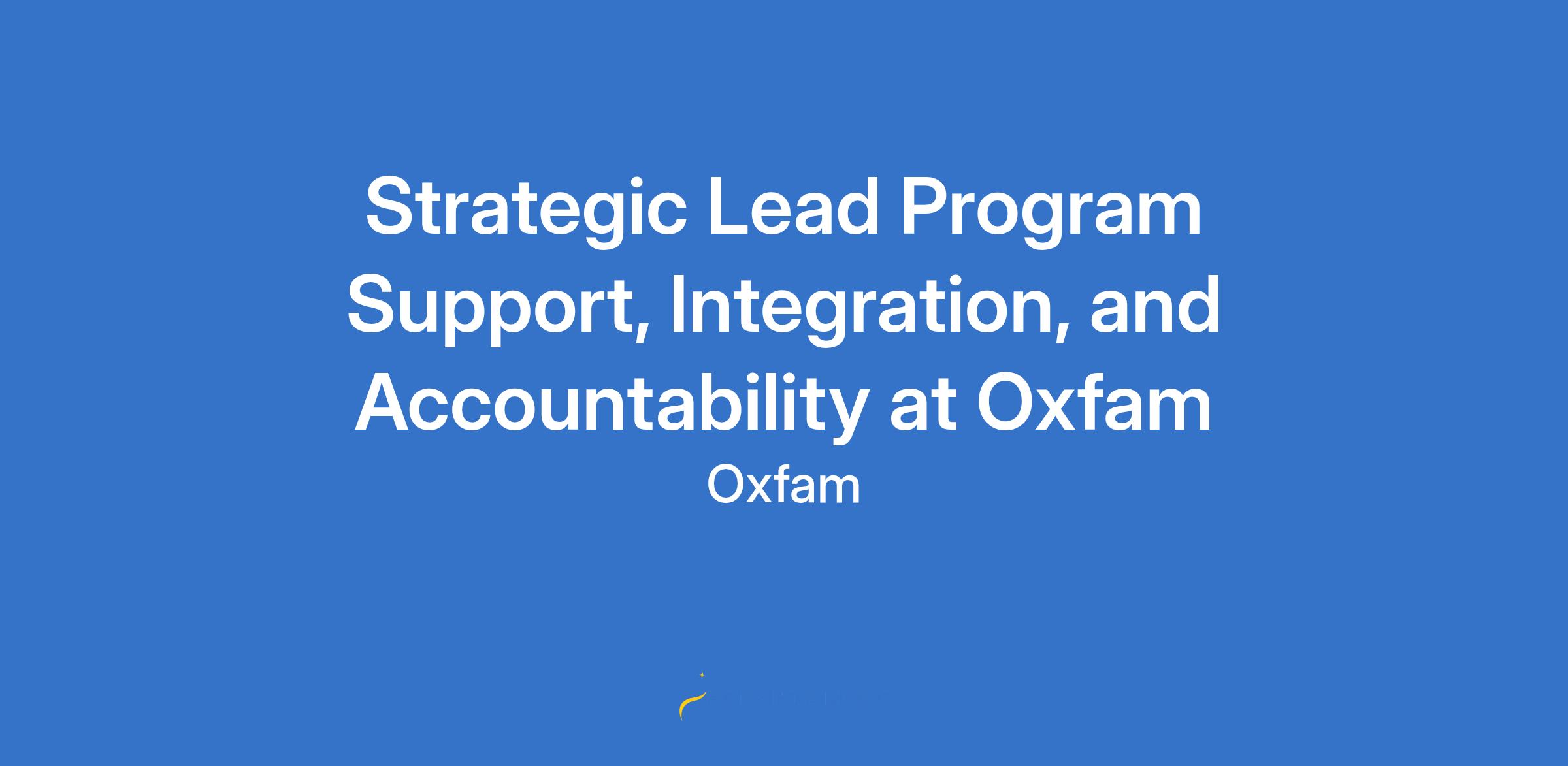 Strategic Lead Program Support, Integration, and Accountability at Oxfam
