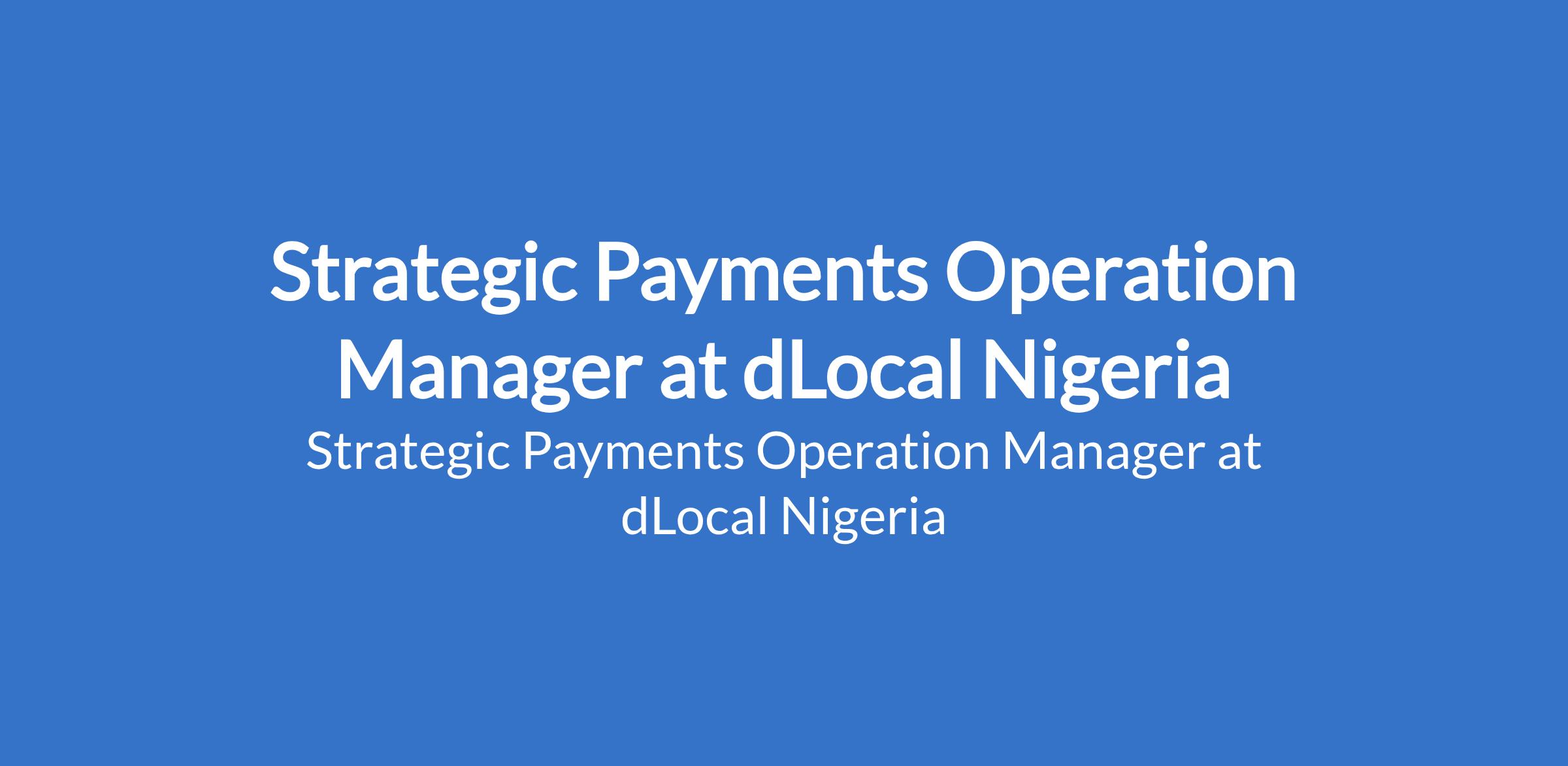 dLocal Nigeria is recruiting to fill the position of: Strategic Payments Operation Manager. The position is located in Lagos State. Interested candidates should possess a Bachelors Degree in Business Administration, Operations Management, or a related field (MBA or advanced degree preferred) with a minimum of 7 years experience in operations management, strategy, or a related roles.