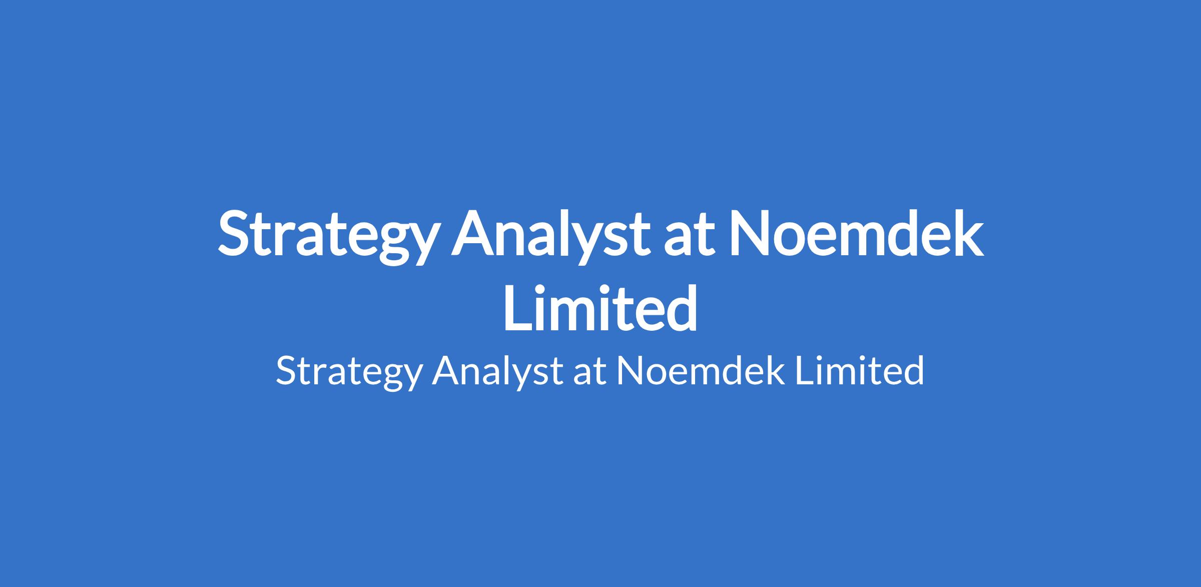 Noemdek Limited is recruiting to fill the position of: Strategy Analyst. The position is located in Ikoyi, Lagos State. Interested candidates must be a Fresh Graduates with a Bachelors Degree in Economics, Accounting, Finance, Business and related courses.
