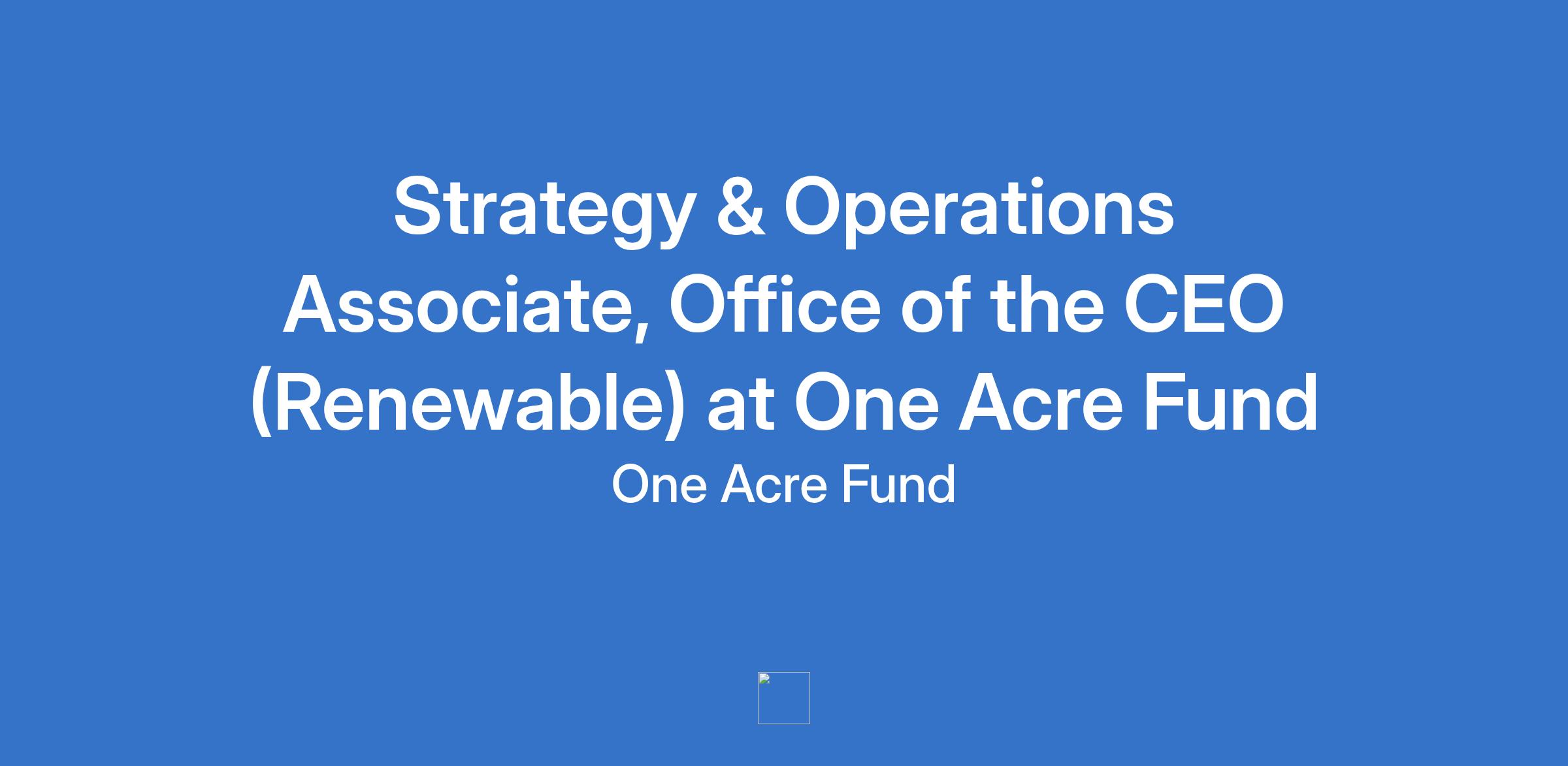 Strategy & Operations Associate, Office of the CEO (Renewable) at One Acre Fund