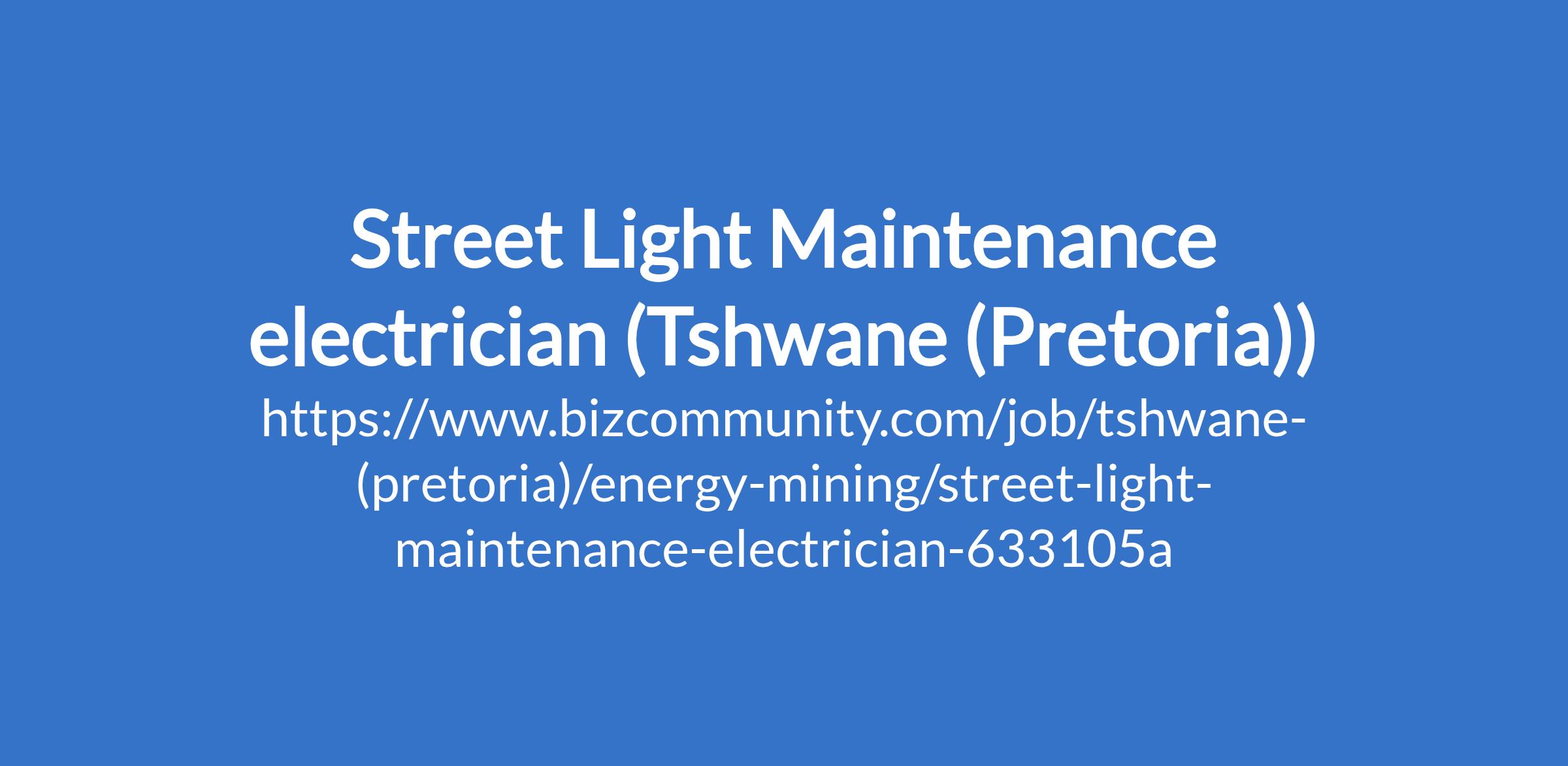 Street Light Maintenance electrician (Tshwane (Pretoria))