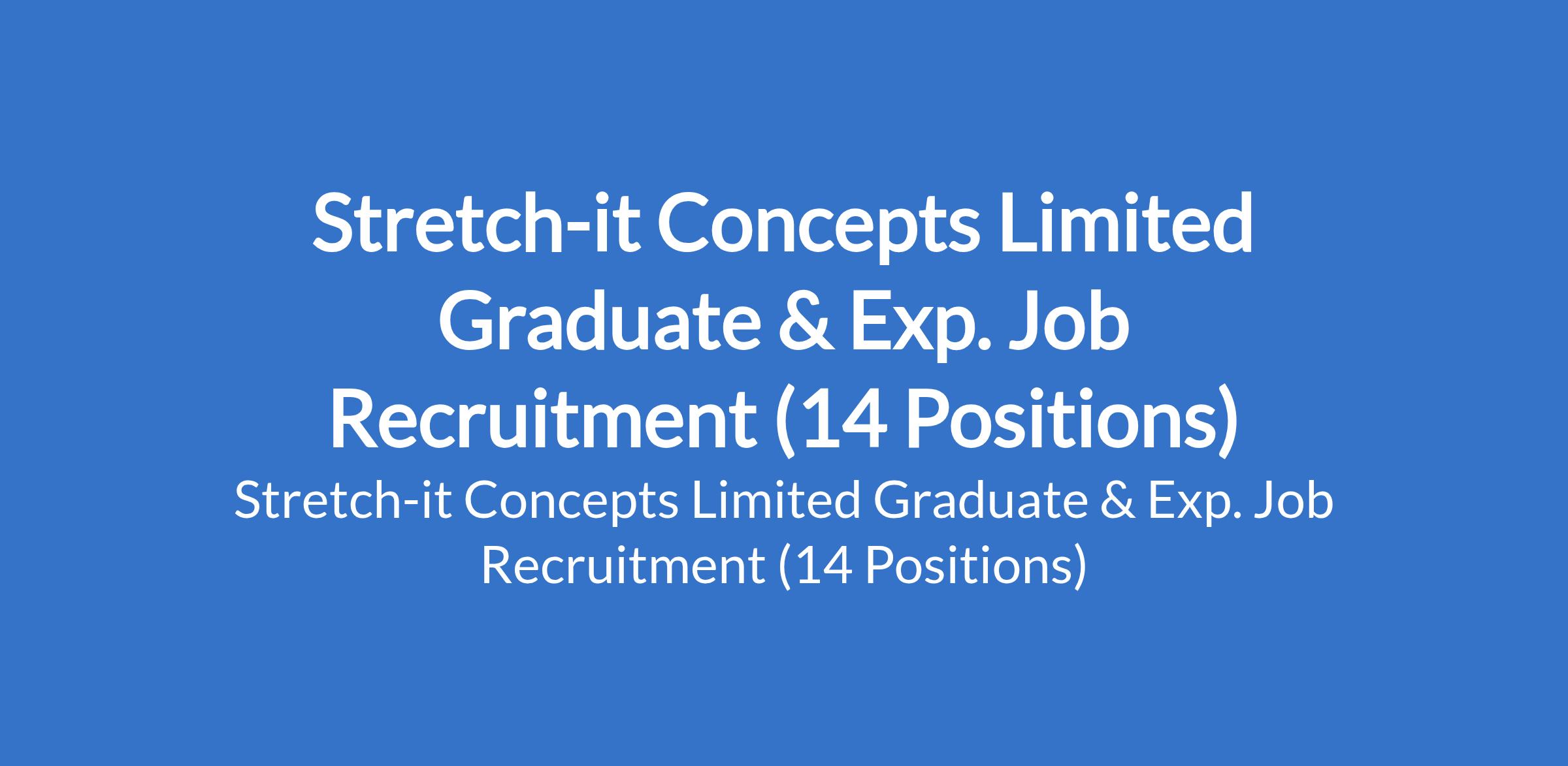 Stretch-it Concepts Limited is currently recruiting suitable candidates to fill the following graduate and experienced positions in Lagos State: CCTV Monitor / Operator, Business Development Officer, NYSC Corp Member, HR Officer (Performance Management Specialist), Pharmacist, Personal Assistant, Admin Officer, Admin Manager, Experienced Human Resource Manager, I.T Personnel, Kitchen Manager, Experienced Supermarket Manager, Cashier and Civil / Structural Engineer.