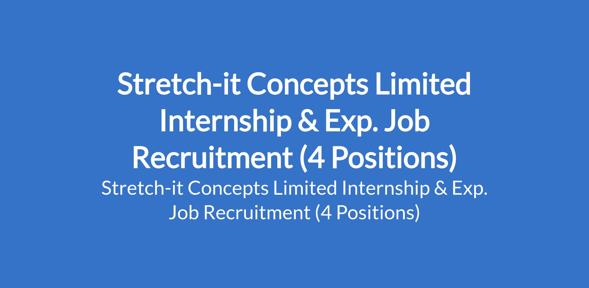 Stretch-it Concepts Limited is currently recruiting suitable candidates to fill the following internship and experienced positions in Lagos State: Inventory Officer, Accountant, Social Media Intern (Creative & Content Focused - Remote), and HR Intern.