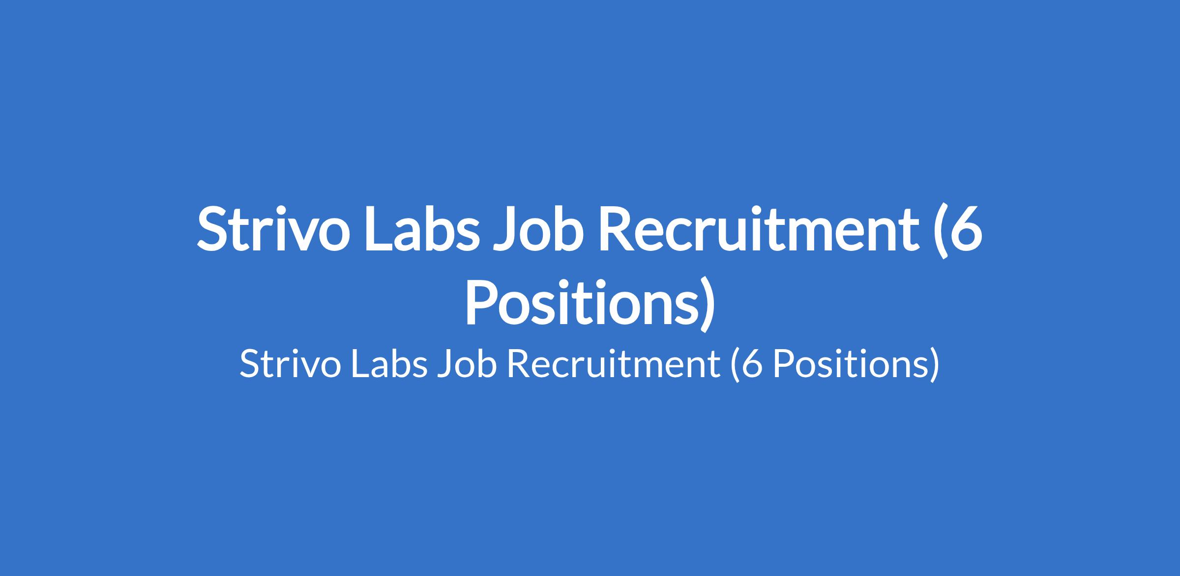 Strivo Labs is recruiting suitably qualified candidates to fill the following positions in Lagos State: Technical Sales Specialist, Security Architect, Executive Assistant, Senior Backend Engineer (Java), Engineering Manager (Java), Technology Lead (Java)