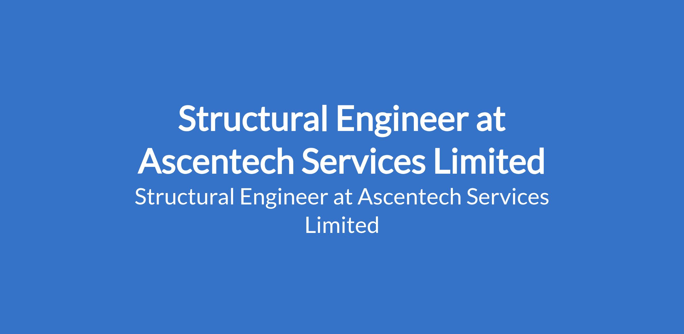 Ascentech Services Limited is recruiting to fill the position of: Structural Engineer. The position is located in Ibeju, Lekki - Lagos State. Interested candidates should possess an HND / B.Sc / Masters Degree in Structural Engineering with a minimum of 10 years experience in structural design for large-scale projects.