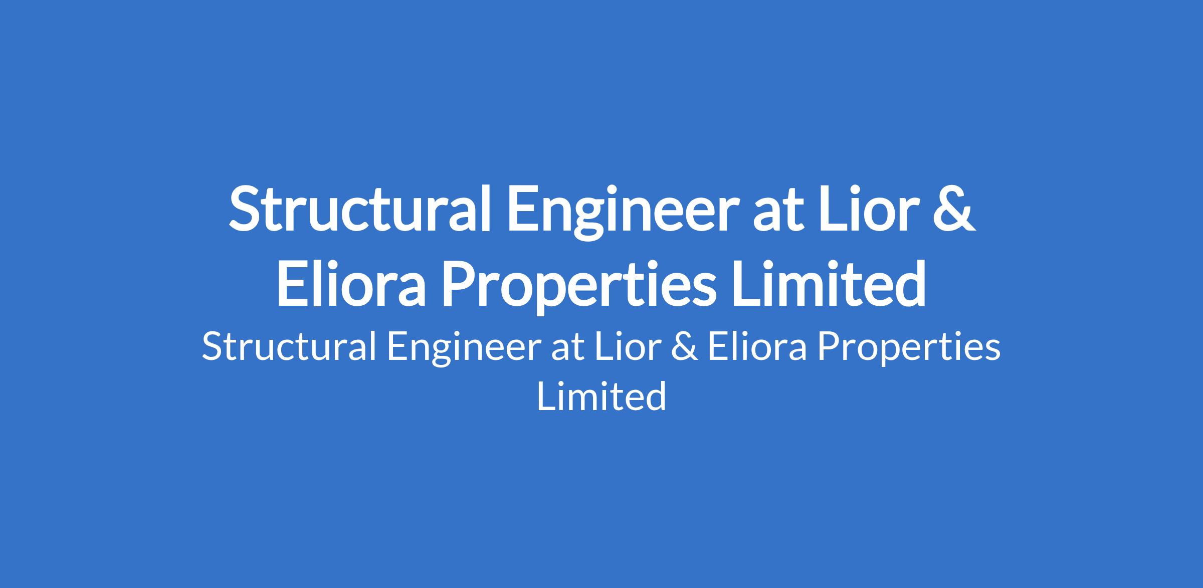 Structural Engineer at Lior & Eliora Properties Limited