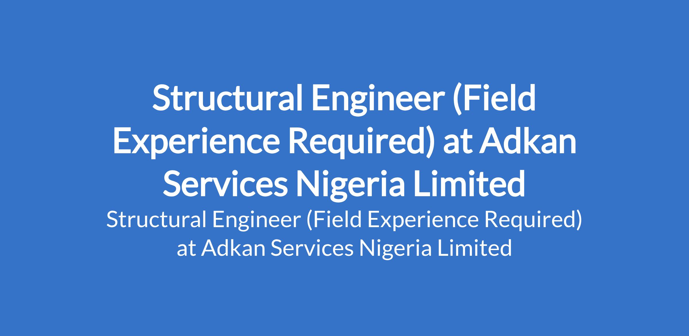 Adkan Services Nigeria Limited is recruiting to fill the position of: Structural Engineer (Field Experience Required). The position is located in Abuja (FCT). Interested candidates should possess a Bachelors Degree (B.Sc / HND) in Civil or Structural Engineering with 47 years proven field/site experience in structural engineering (mandatory).