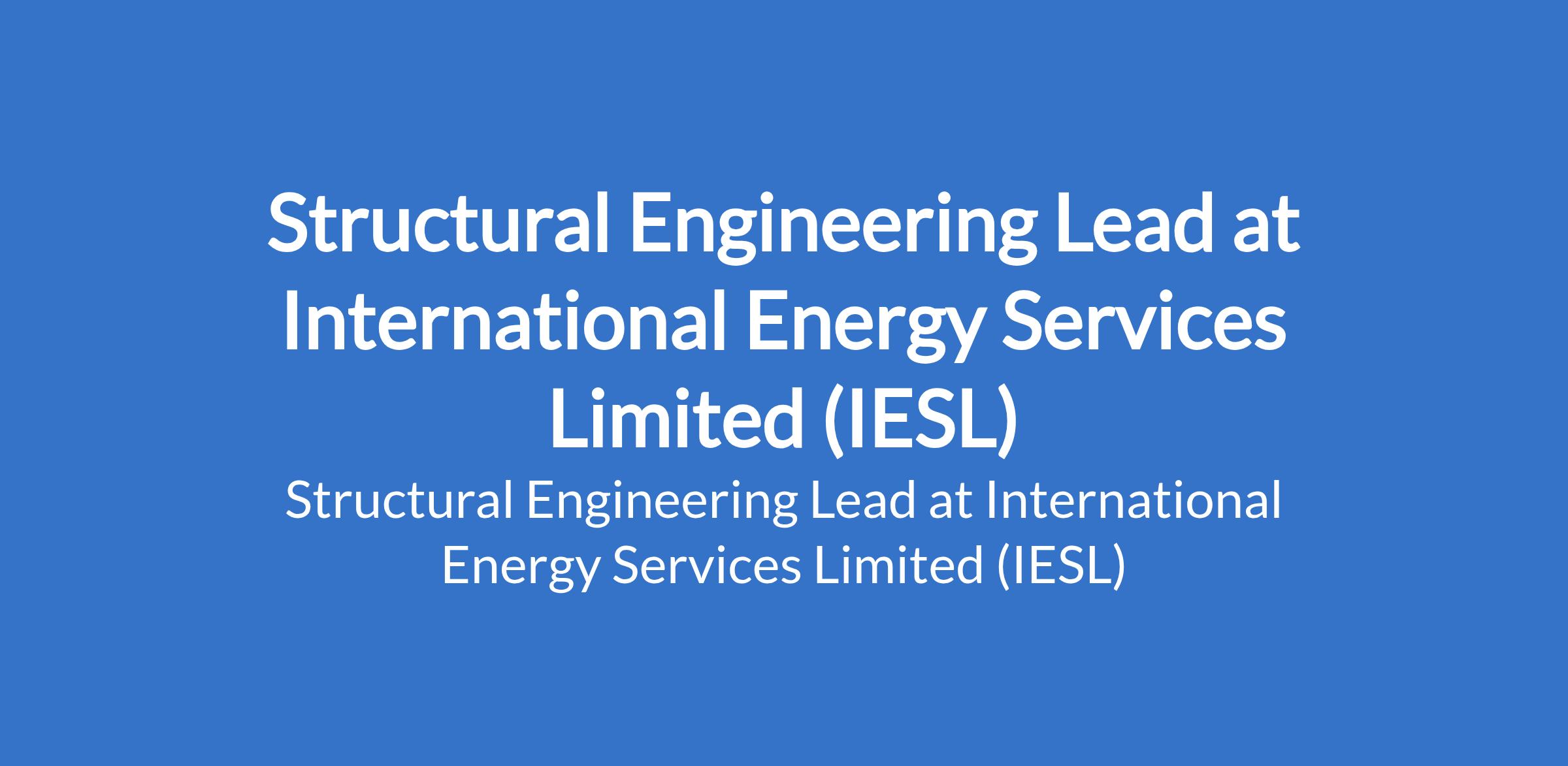 International Energy Services Limited (IESL) is recruiting to fill the position of: Structural Engineering Lead. The position is located in Rivers State. Interested candidates should possess a Degree in Civil / Structural / Mechanical Engineering with 610 years experience (including leadership role).