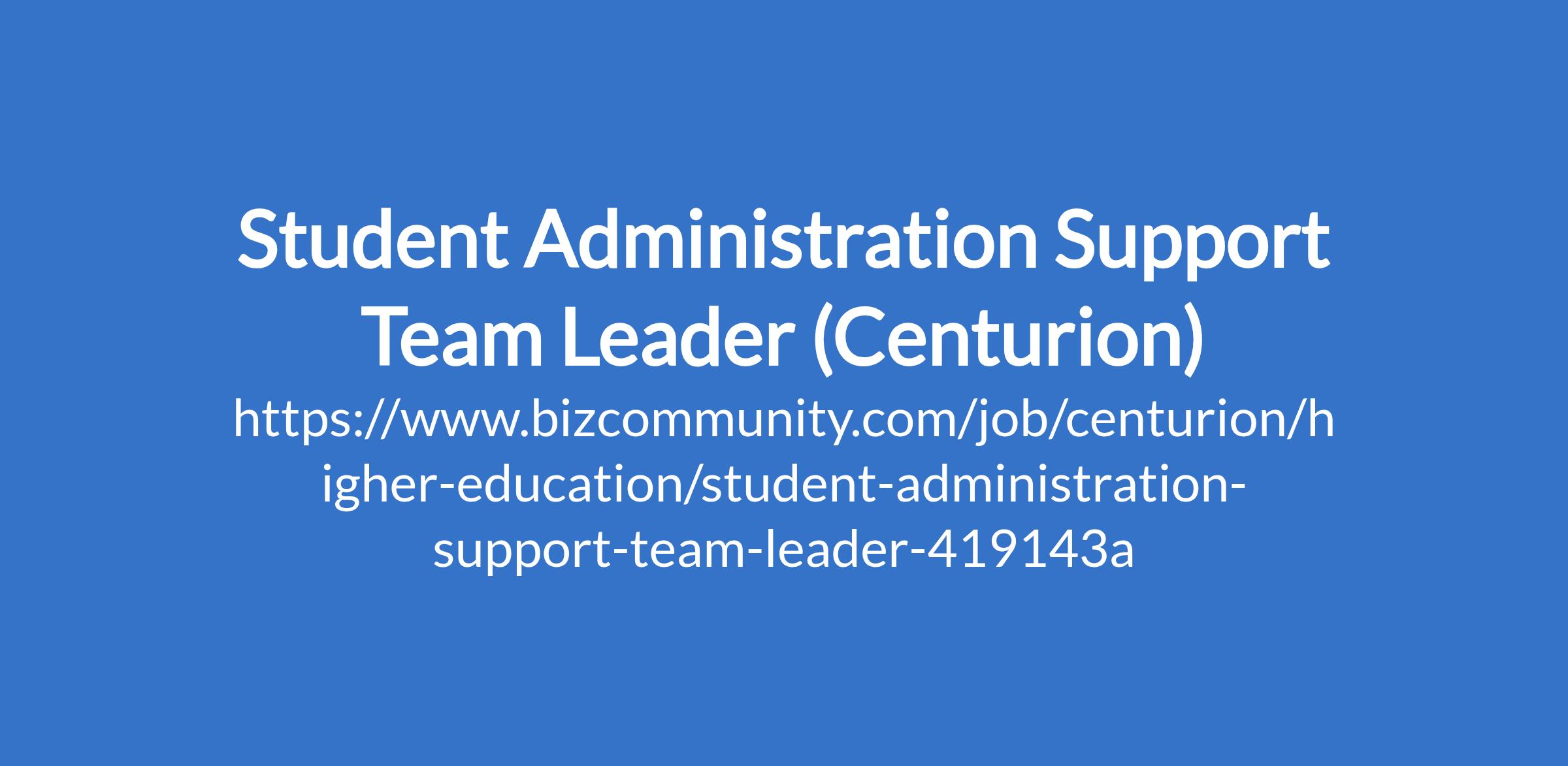 Student Administration Support Team Leader (Centurion)