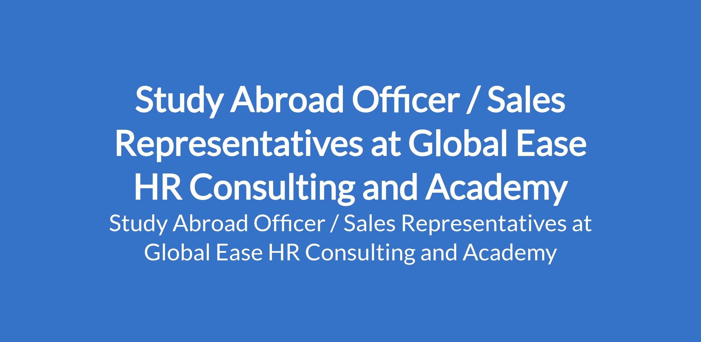 Global Ease HR Consulting and Academy is recruiting to fill the position of: Study Abroad Officer / Sales Representative. The position is located in Karu, Abuja (FCT). Salary: N100,000 - N140,000 per month. Interested candidates should possess relevant qualifications.