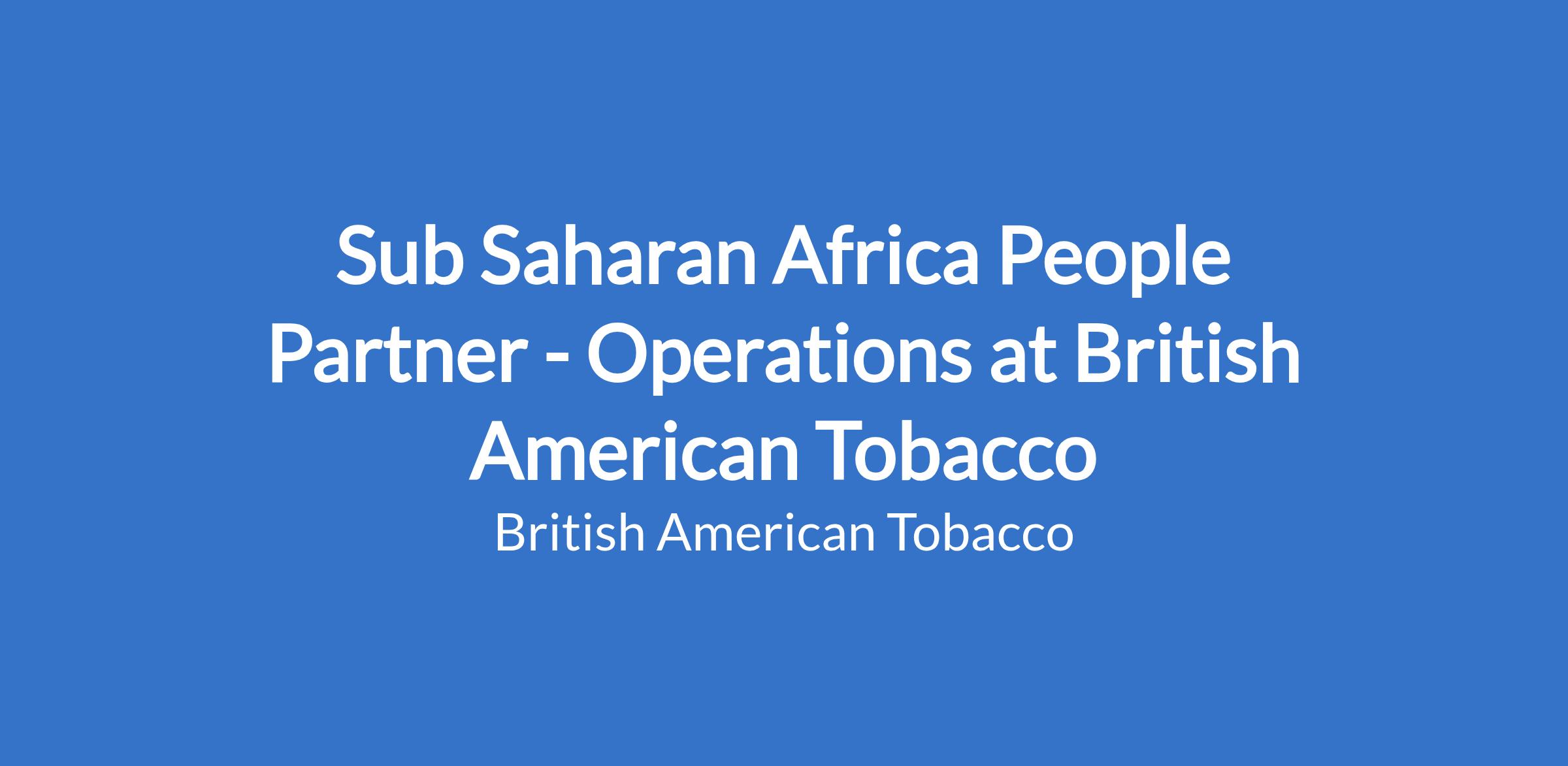 Role purpose To develop Human Resource strategies for Operations, which are aligned with the business strategy for British American Tobacco Nigeria and act as a strategic business partner by providing professional advice and delivering effective HR policies/ practices/ systems/ processes/ tools and services to all staff in Sub Sahara Africa Area Operations.