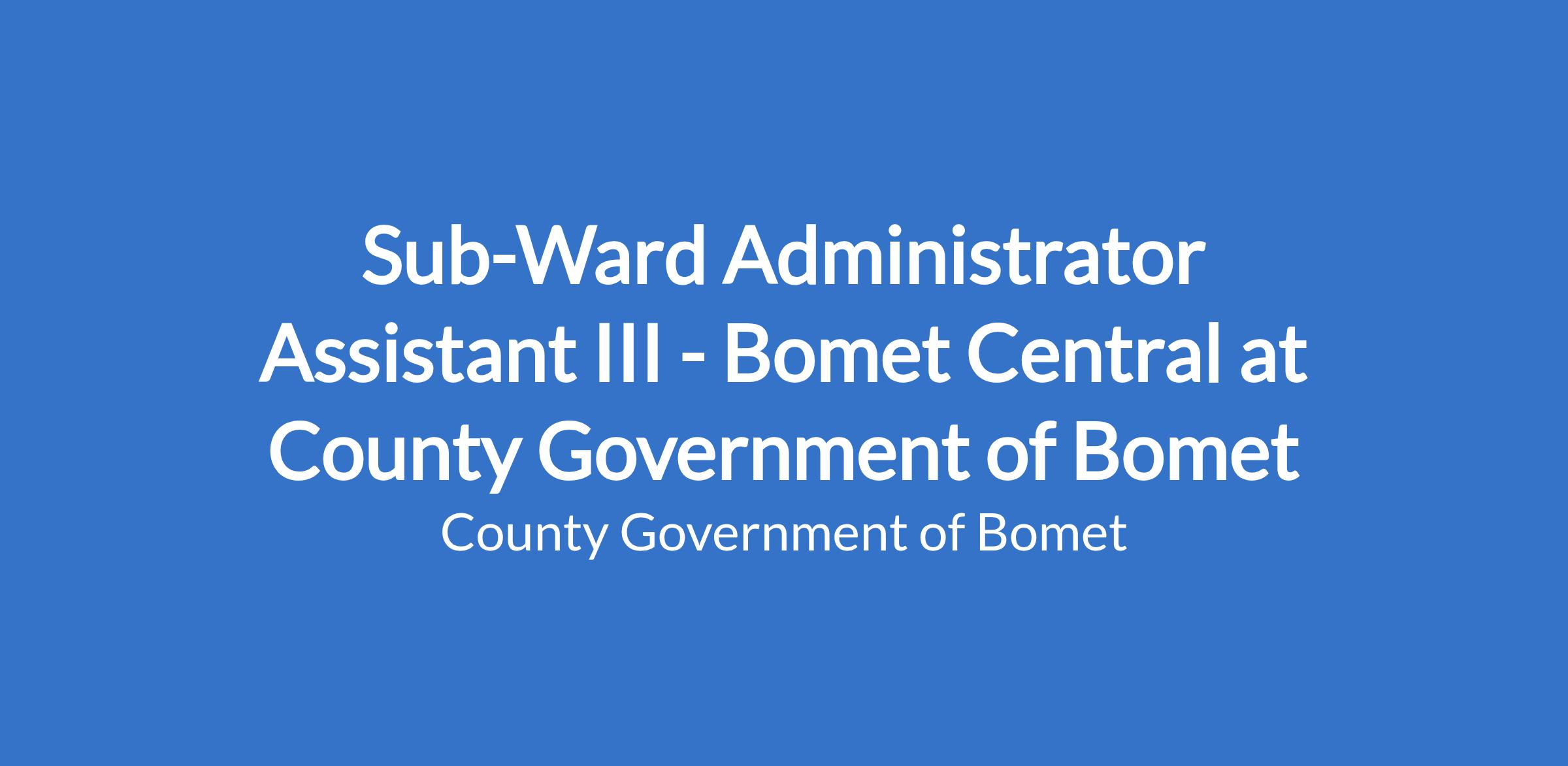 Sub-Ward Administrator Assistant III - Bomet Central at County Government of Bomet