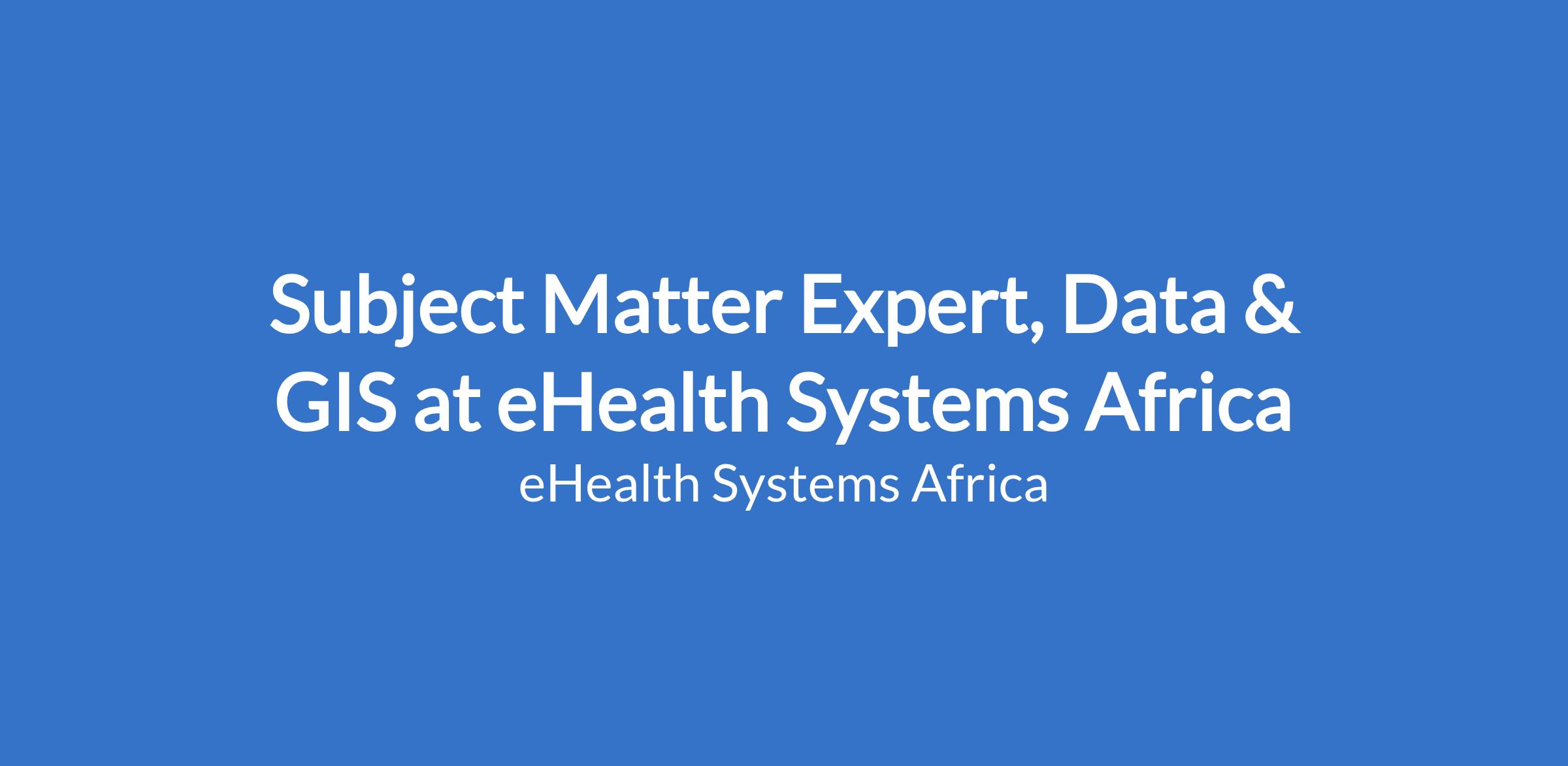 The Subject Matter Expert, Data & GIS provides deep technical expertise in data management, analytics, geospatial information systems, and spatial analysis to support eHealth Africa's business development efforts.