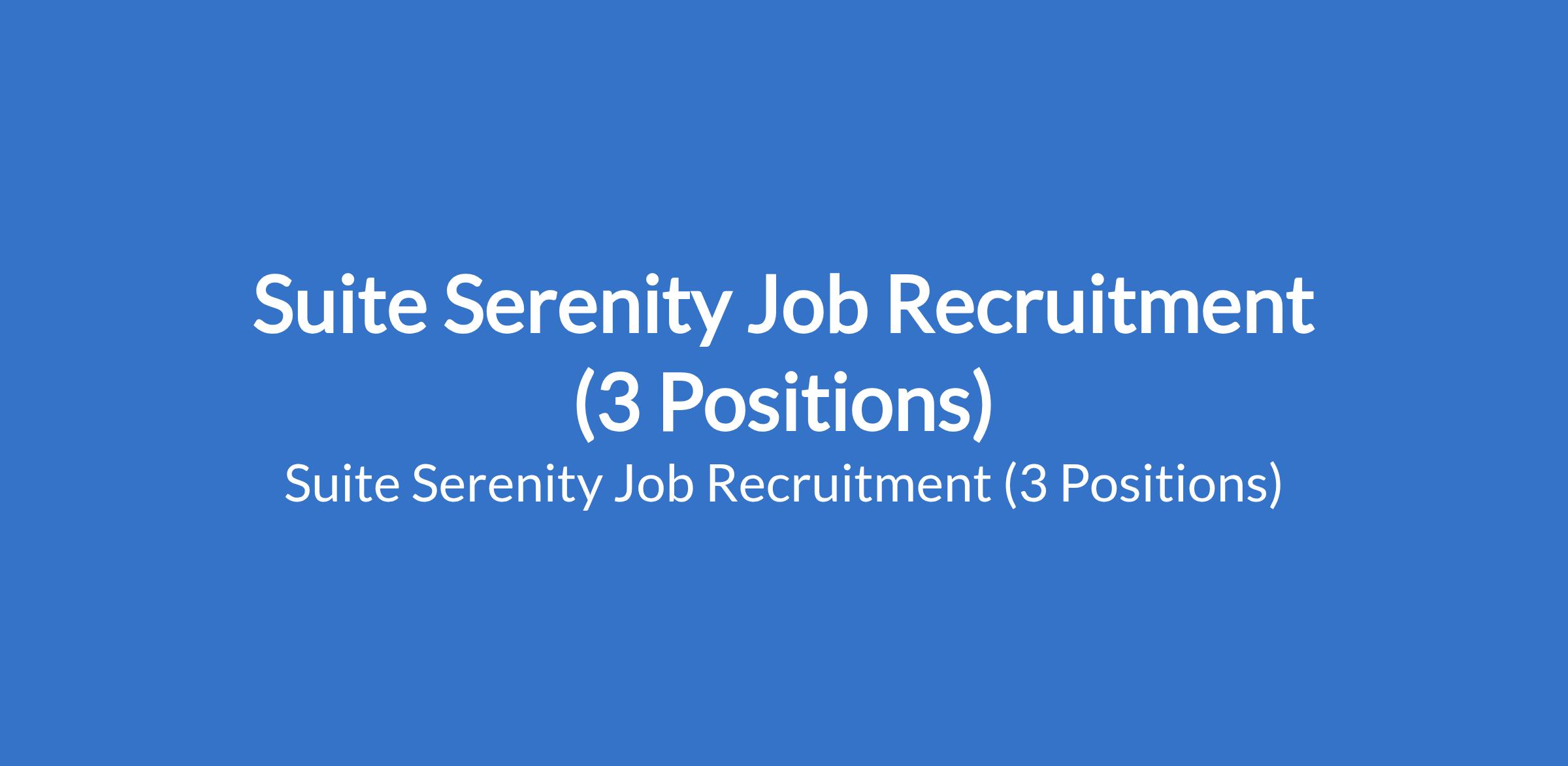 Suite Serenity Job Recruitment (3 Positions)