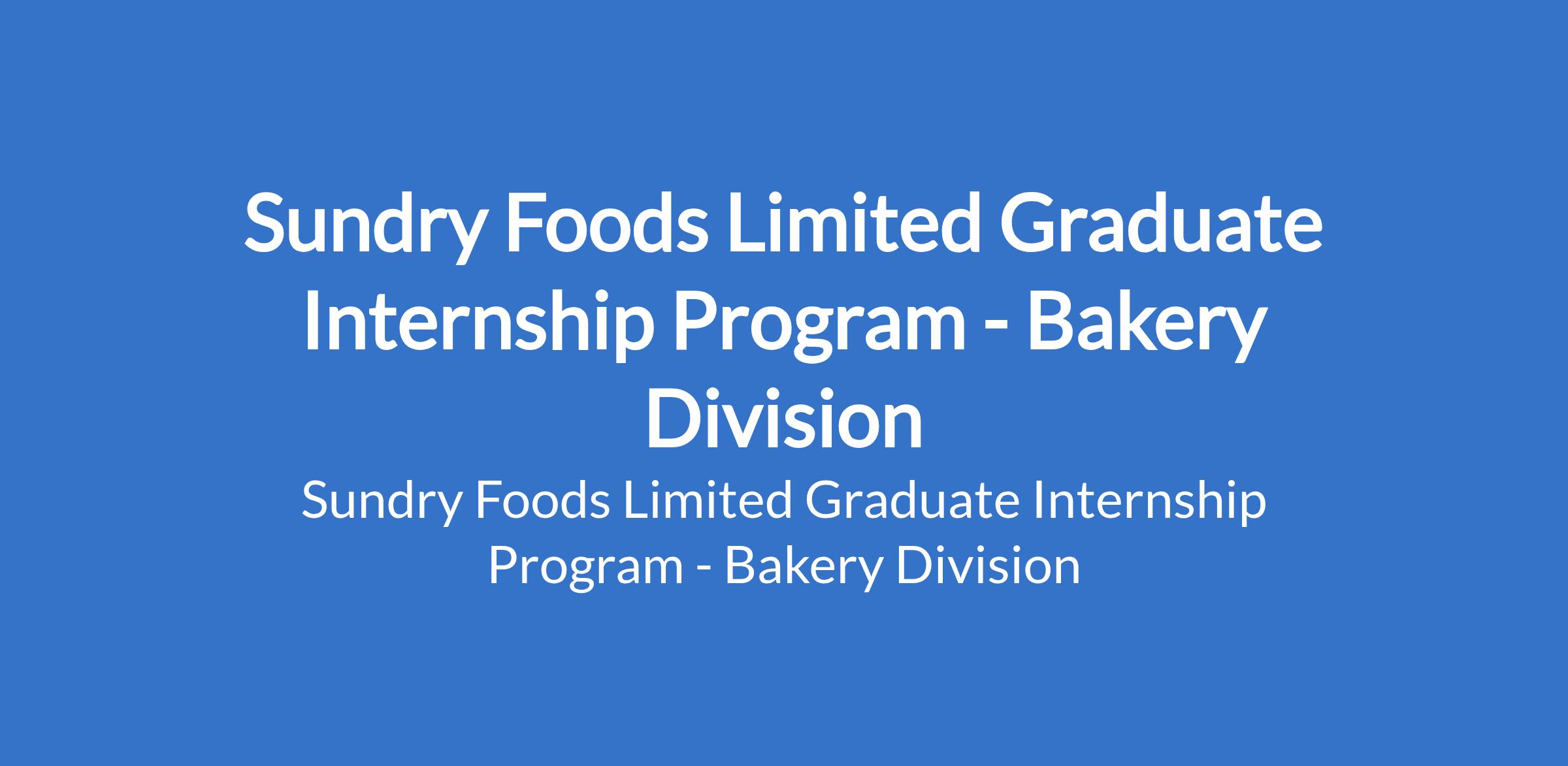 Sundry Foods Limited invites applications from qualified candidates for its Graduate Internship Program - Bakery Division in Abuja and Rivers State. This program is for fresh graduates of Food Science and Technology who have recently completed their NYSC programme. Interested candidates should possess a Bachelor's Degree or HND qualification in Food Science and Technology with a minimum of second class lower.