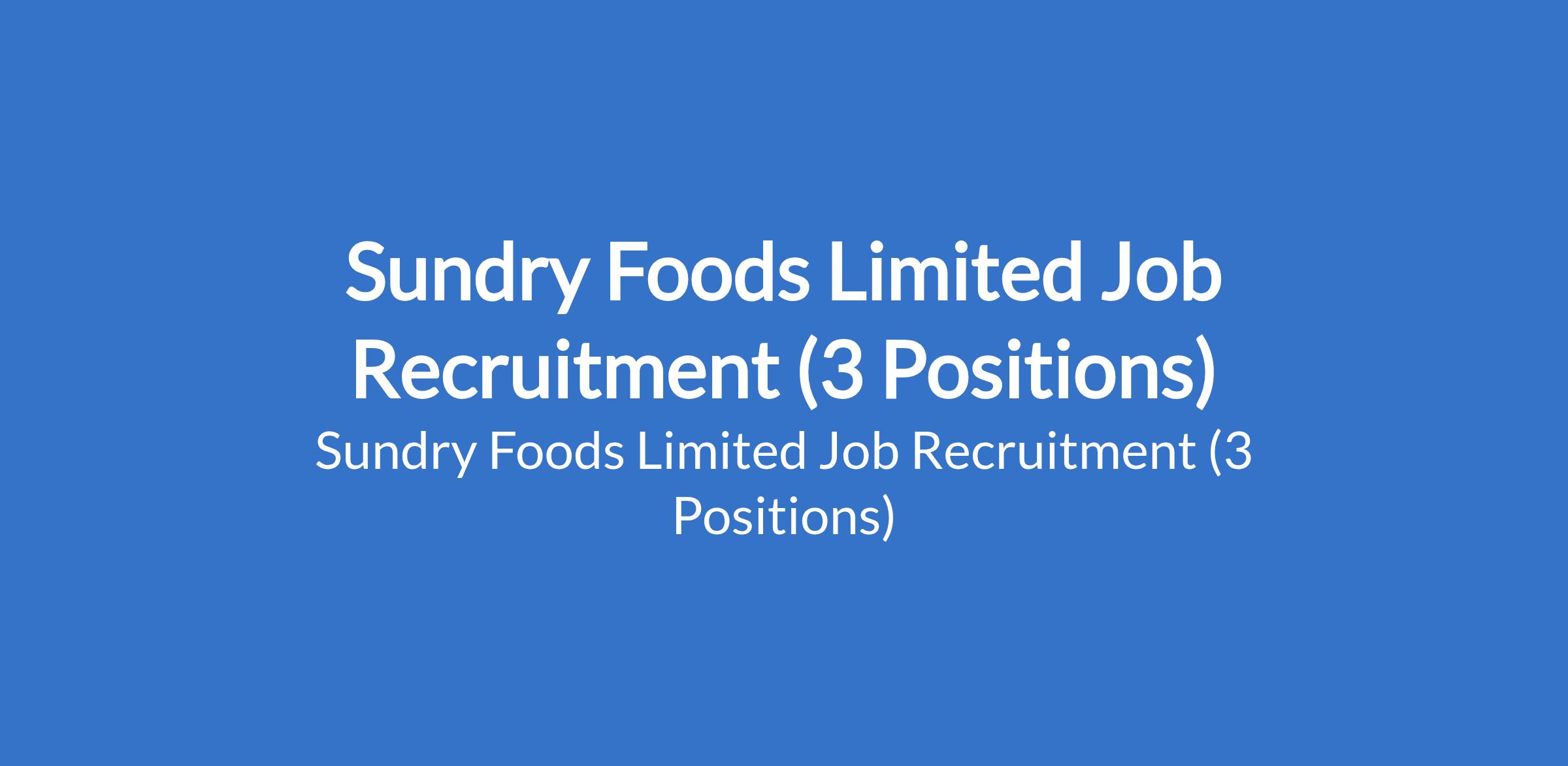 Sundry Foods Limited is recruiting suitably qualified candidates to fill the following positions in Abuja, Rivers, Edo, Delta, Kwara, Anambra, Ondo, Lagos, Akwa Ibom, Oyo, Imo, and Ogun States: Unit Accountant, Resident Internal Auditor, and Finance Manager.