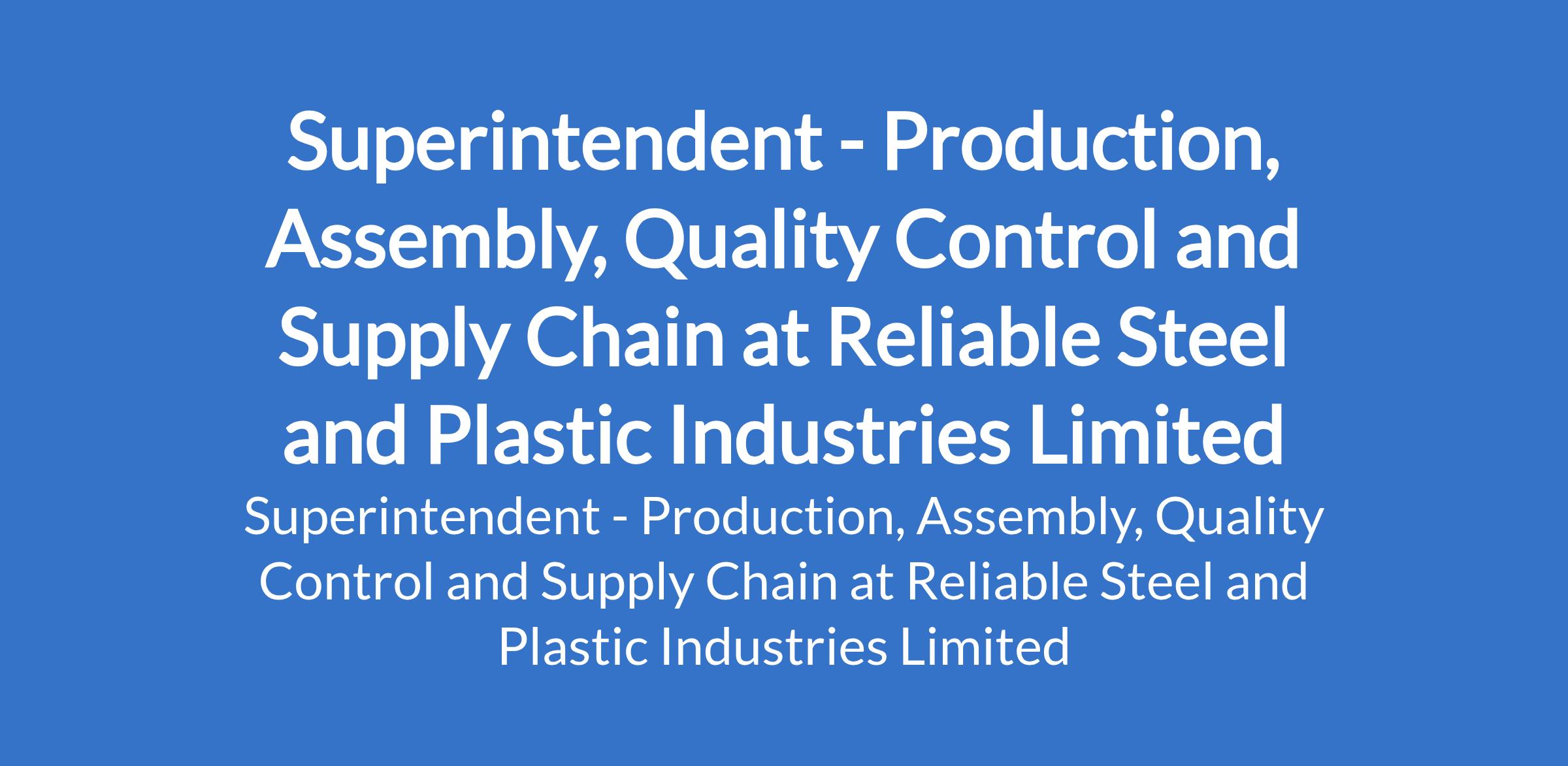 Reliable Steel and Plastic Industries Limited is recruiting to fill the position of: Superintendent - Production, Assembly, Quality Control and Supply Chain. The position is located in Onitsha, Anambra State. Interested candidates should possess a Bachelors Degree in Mechanical Engineering, Industrial Engineering, Production Engineering, or related fields with 3 5 years hands-on experience.