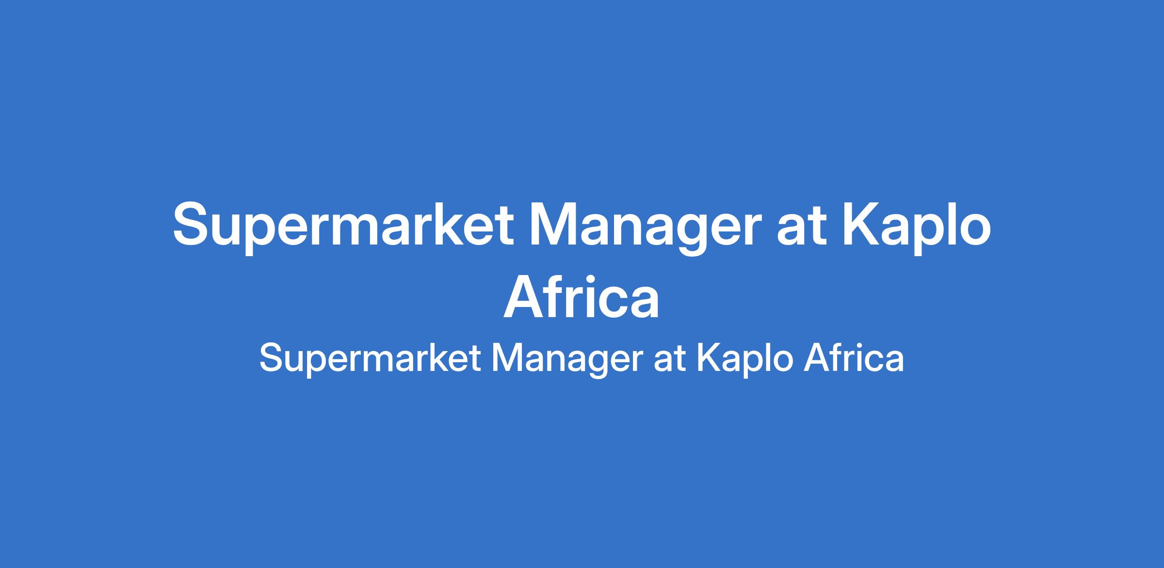 Kaplo Africa - Our client is recruiting to fill the position of: Supermarket Manager. The position is located in Benin City, Edo State. Salary: N350,000 monthly. Interested candidates should possess relevant qualifications and proven experience as a Supermarket or Retail Manager.