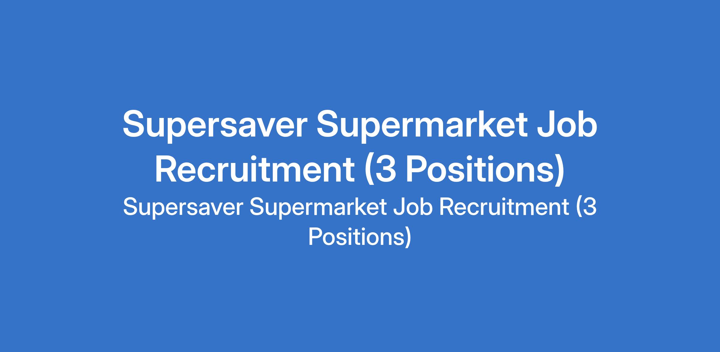 Supersaver Supermarket Job Recruitment (3 Positions)