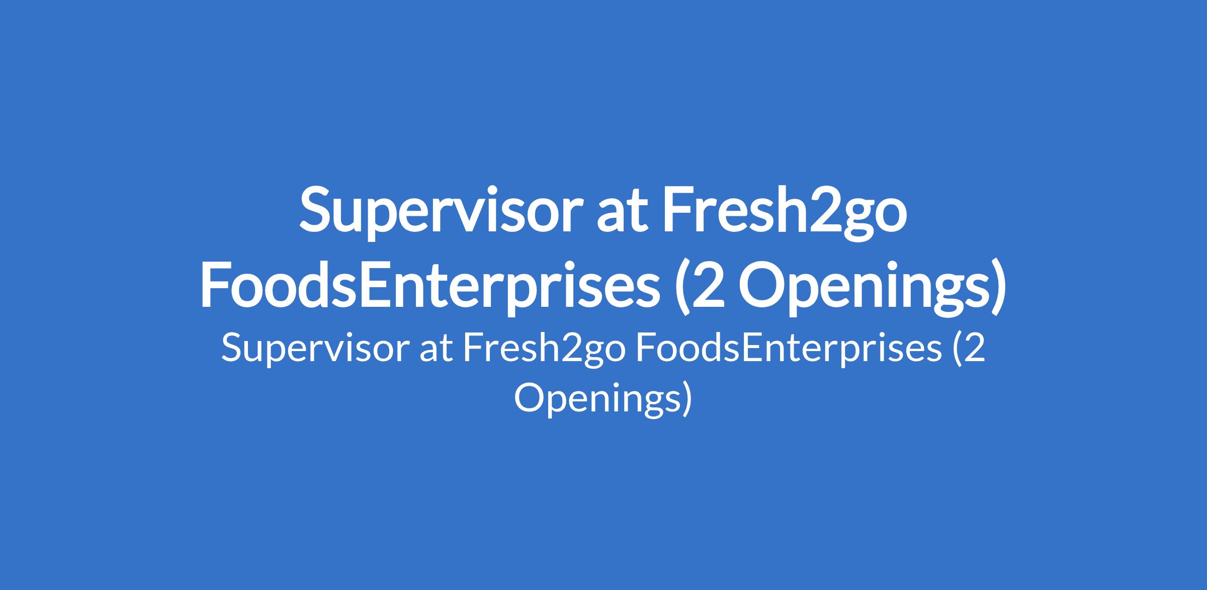 Fresh2go FoodsEnterprises is recruiting to fill the position of: Supervisor. The position is located in Ibadan Akala, and Alakia - Oyo State. Salary: N80,000 - N100,000 monthly. Interested candidates should possess an HND / BSc Degree in any discipline with 1 - 2 years of experience as a supervisor, especially in a food retail company.