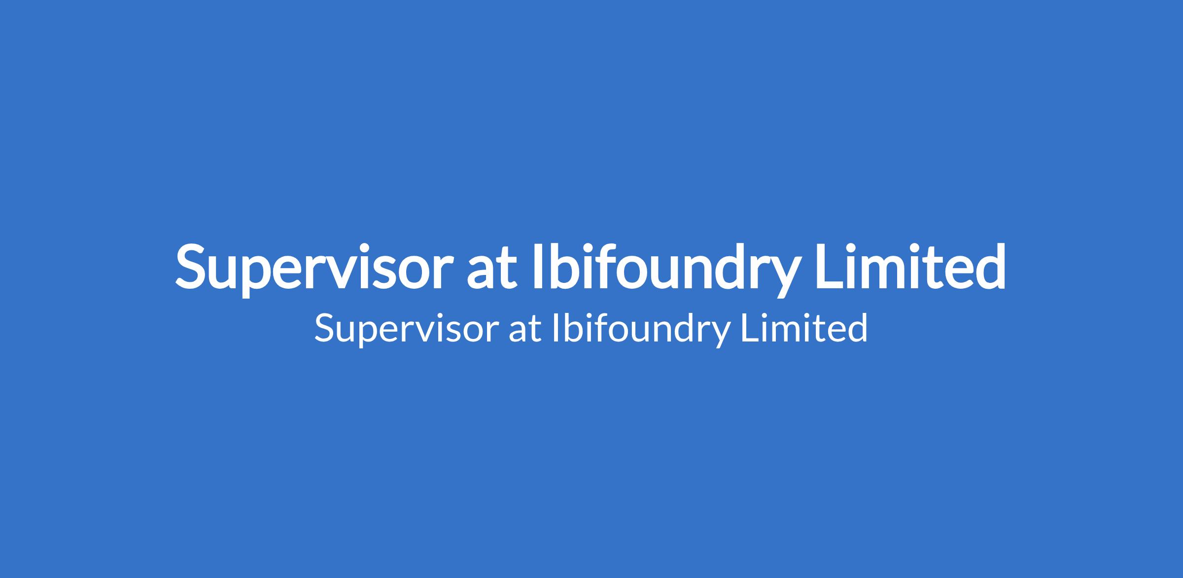 Ibifoundry Limited is recruiting to fill the position of: Supervisor. The position is located in Lagos State. Salary: N150,000 - N250,000 monthly. Interested candidates should possess a Diploma/Certificate in first line management or relevant field with proven experience as supervisor or relevant role.