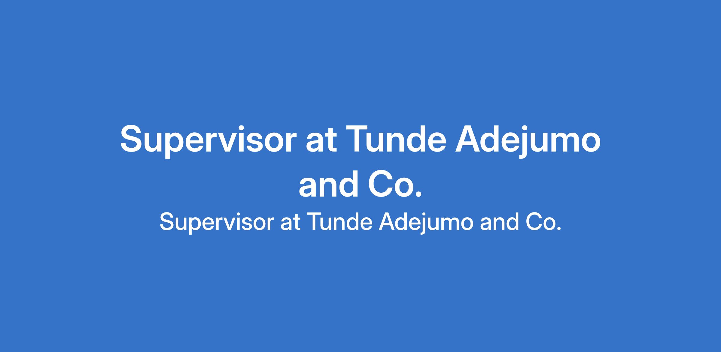 Tunde Adejumo and Co. is recruiting to fill the position of: Supervisor. The position is located in Ibadan, Oyo State. Salary: N70,000 - N100,000 monthly. Interested candidates should possess minimum of an SSCE / OND qualification and should be preferably Males.