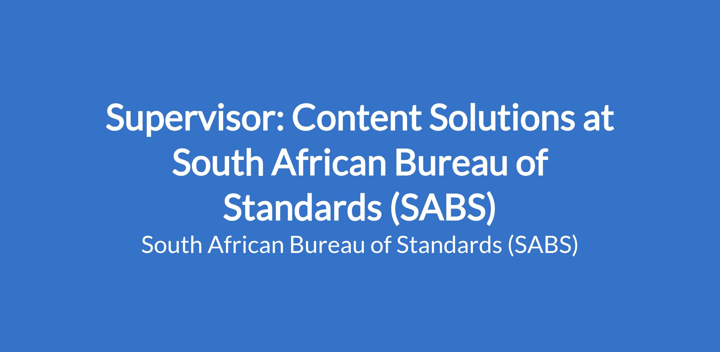 To supervise the implementation of operational work plans and formulate associated procedures to ensure the effective operational management of Content Solutions products and services and optimize revenue generating potential including record keeping and reporting; effective and efficient delivery of the portfolio of services; ensure adherence to statutory regulations and operating procedures to support the SABS value chain and strategic initiatives.