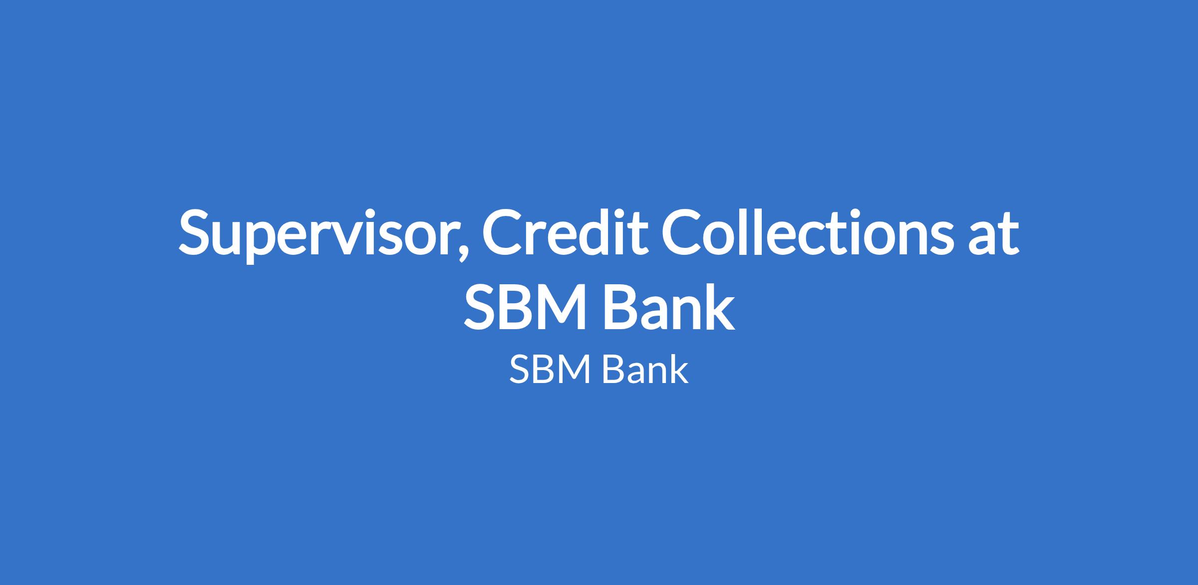 Supervisor, Credit Collections at SBM Bank