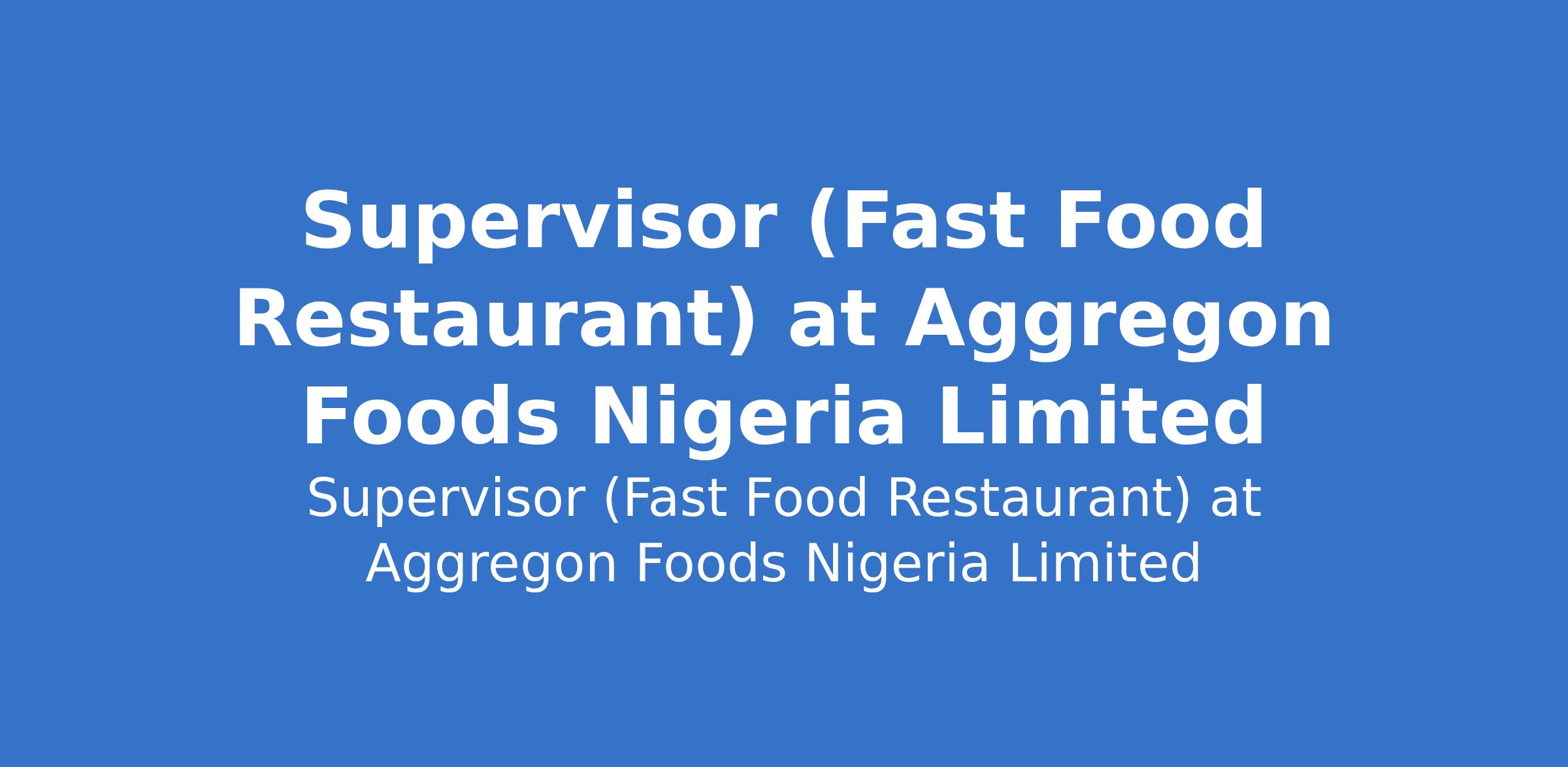 Aggregon Foods Nigeria Limited is recruiting to fill the position of: Supervisor (Fast Food Restaurant). The position is located in Ajah, Lagos State. Salary: N80,000 - N100,000 per month. Interested candidates should possess an OND / HND / B.Sc in any related field with 1 5years relevant experience.