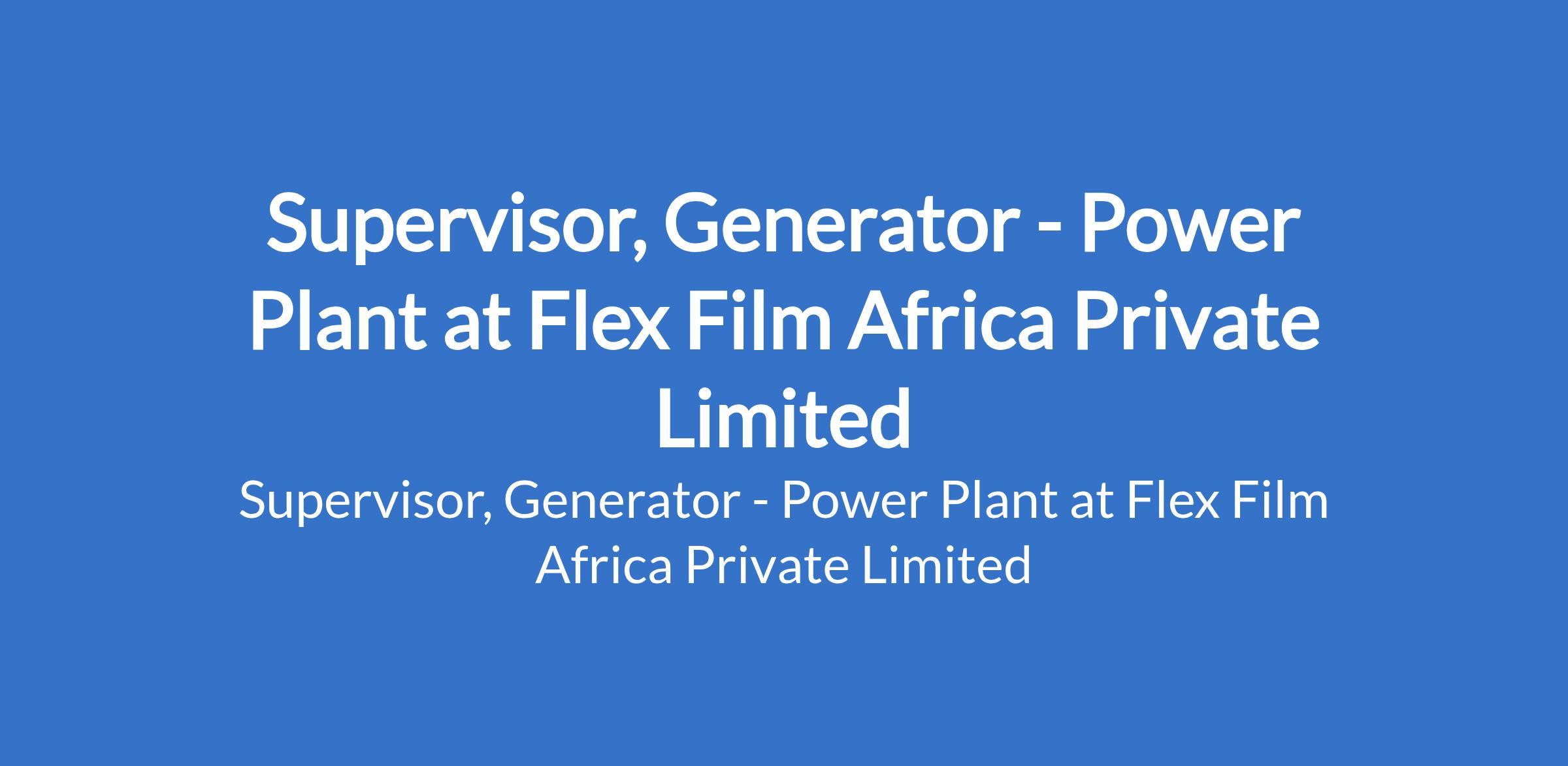 Supervisor, Generator - Power Plant at Flex Film Africa Private Limited