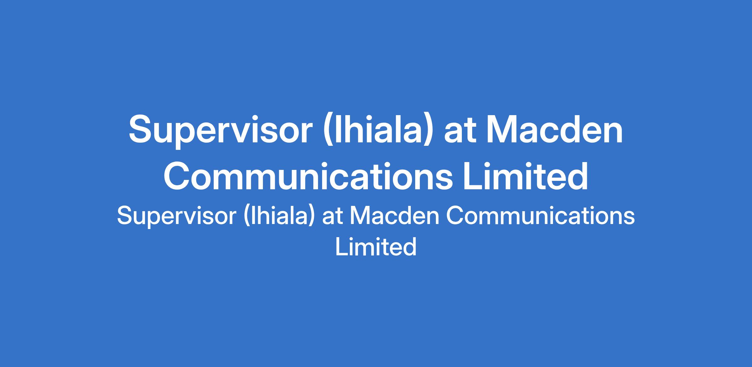 Macden Communications Limited is recruiting to fill the position of: Supervisor. The position is located in Ihiala, Anambra State. Salary: N95,000 - N100,000 monthly. Interested candidates should possess an OND, HND, or Bachelor's Degree with 3-5 years experience and must be resident with Ihiala axis of anambra state.