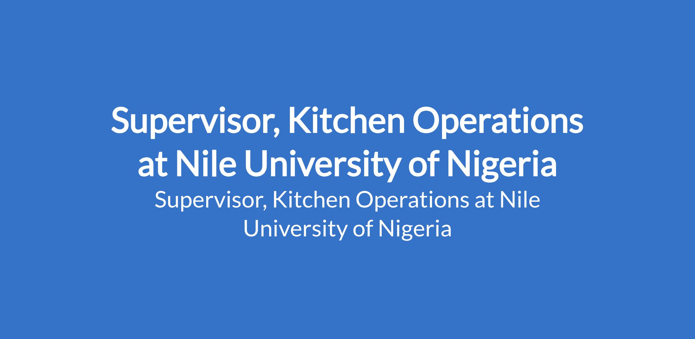 Nile University of Nigeria is recruiting to fill the position of: Supervisor, Kitchen Operations. The position is located in Abuja (FCT). Interested candidates should possess a Bachelors Degree in Hospitality Management, Culinary Arts, Business Administration, or a related field (preferred) with 3-5 years of experience in Hospitality/culinary services in a similar or related position.