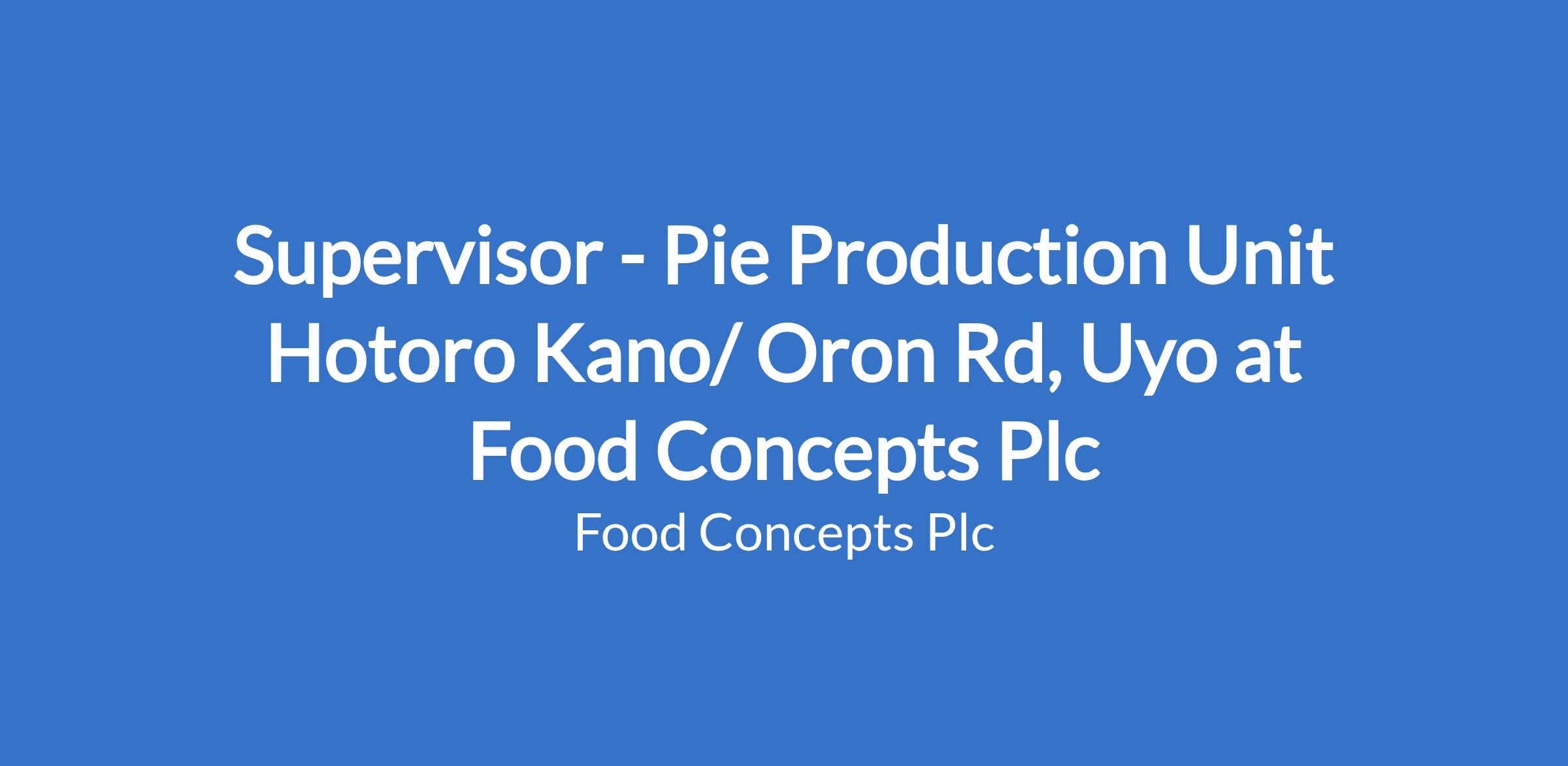 Supervisor - Pie Production Unit Hotoro Kano/ Oron Rd, Uyo at Food Concepts Plc