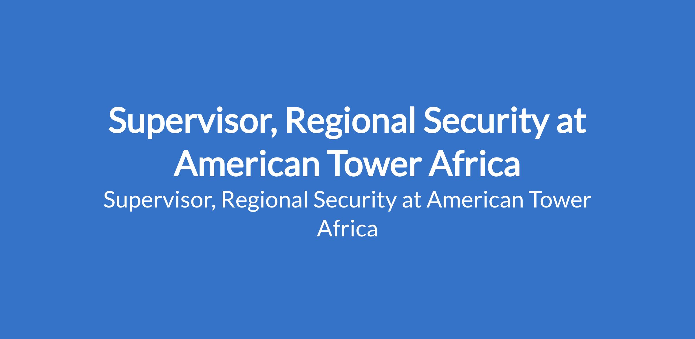 Supervisor, Regional Security at American Tower Africa