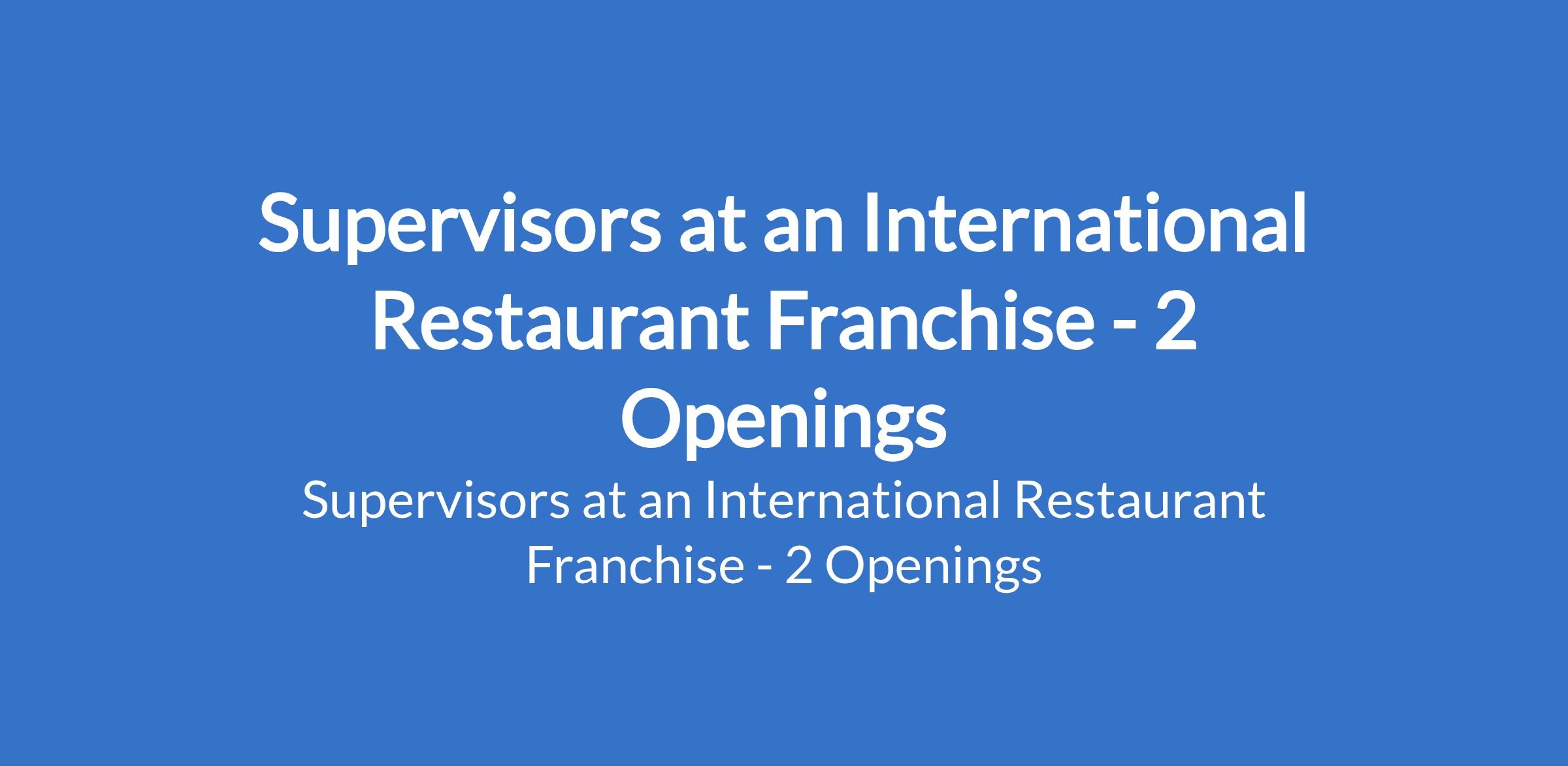 Supervisors at an International Restaurant Franchise - 2 Openings