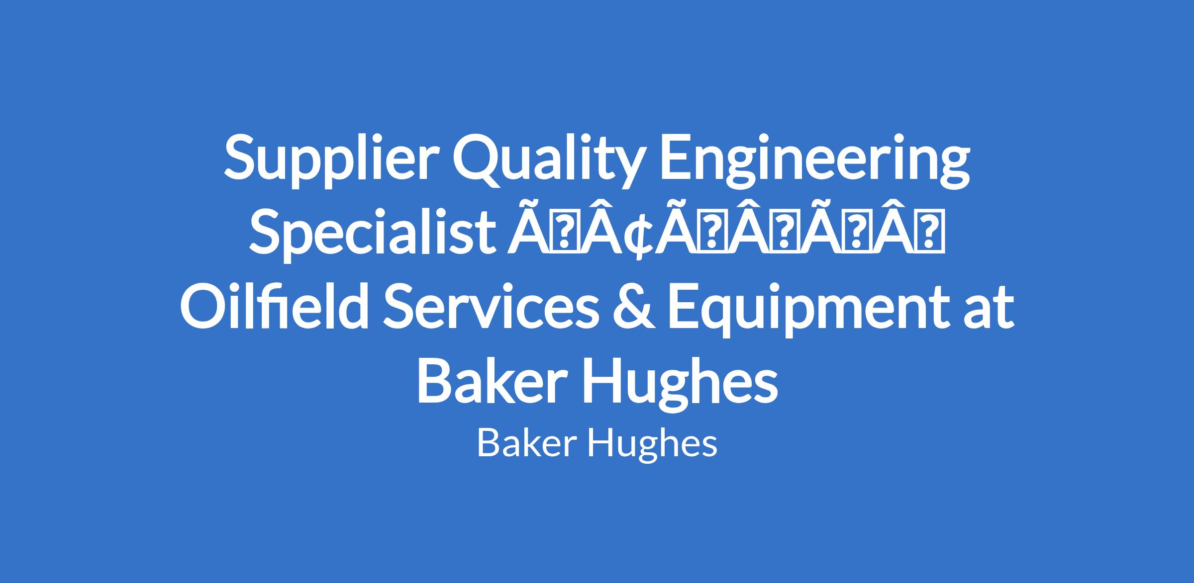 Supplier Quality Engineering Specialist âÃÂàOilfield Services & Equipment at Baker Hughes