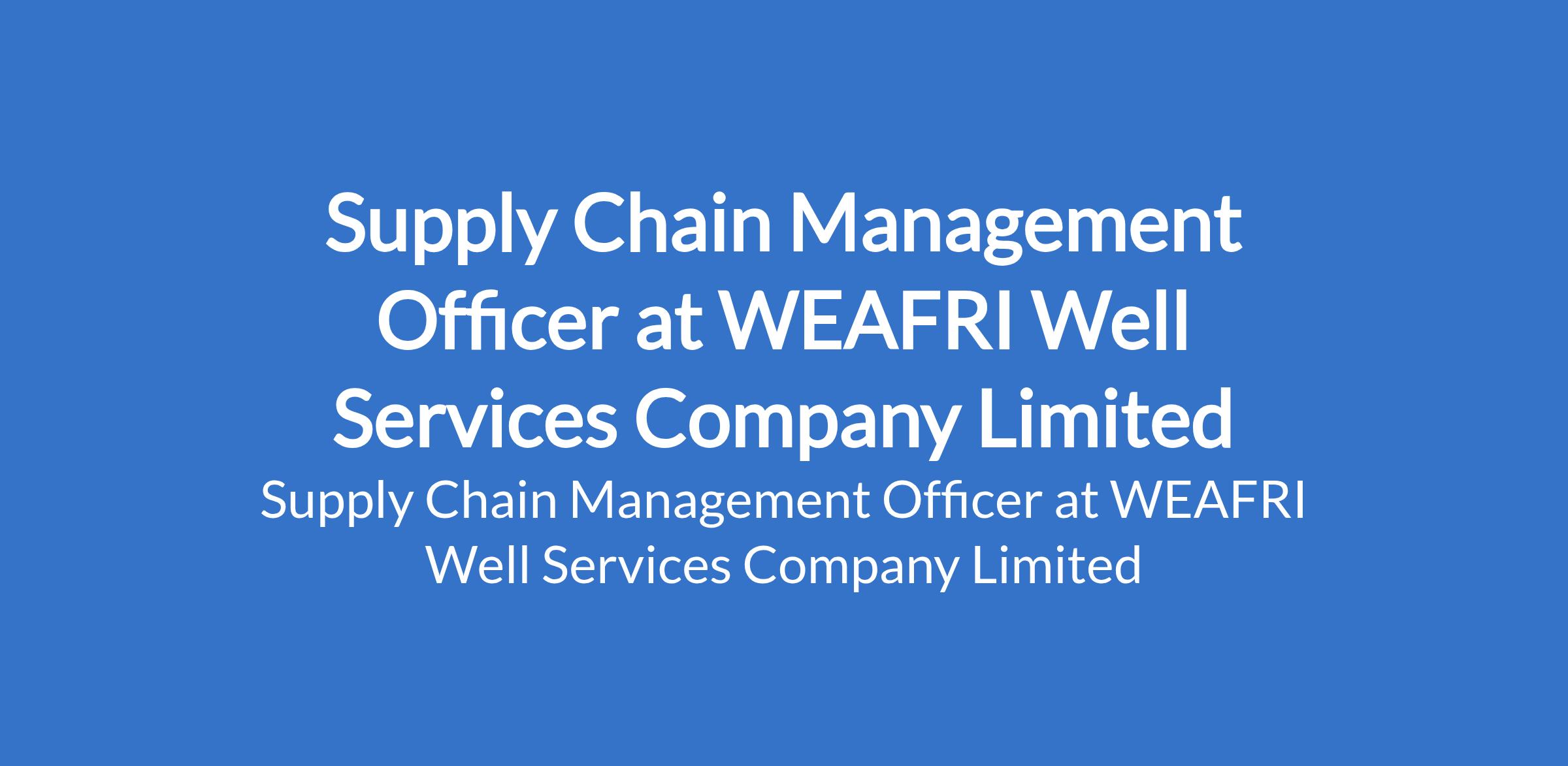 WEAFRI Well Services Company Limited is recruiting to fill the position of: Supply Chain Management Officer. The position is located in Lagos State. Interested candidates should possess relevant qualifications with at least 2 years of working experience.