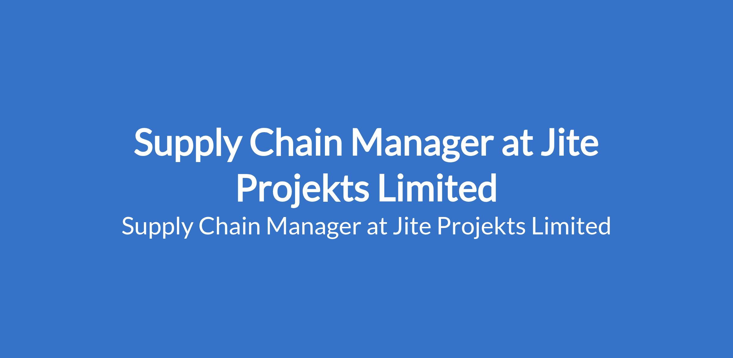 Jite Projekts is recruiting to fill the position of: Supply Chain Manager. The position is located in Lagos State. Interested candidates should possess a Bachelors Degree in Supply Chain Management, Logistics, Business Administration, or related field with 57 years experience in supply chain management, preferably in construction or engineering projects.