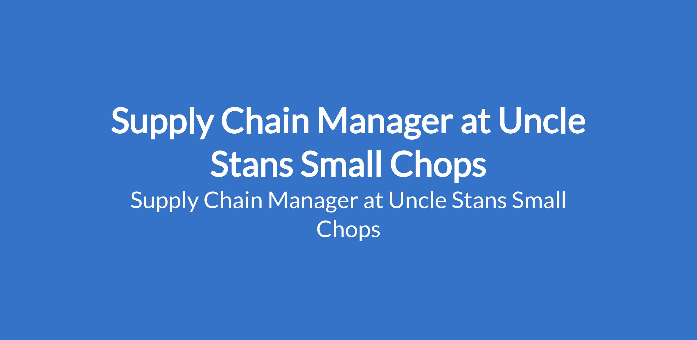 Uncle Stans Small Chops is recruiting to fill the position of: Supply Chain Manager. The position is located in Lekki, Lagos State. Interested candidates should possess relevant qualifications in related fields with 3-5 years experience in Supply Chain, Procurement, or Logistics.