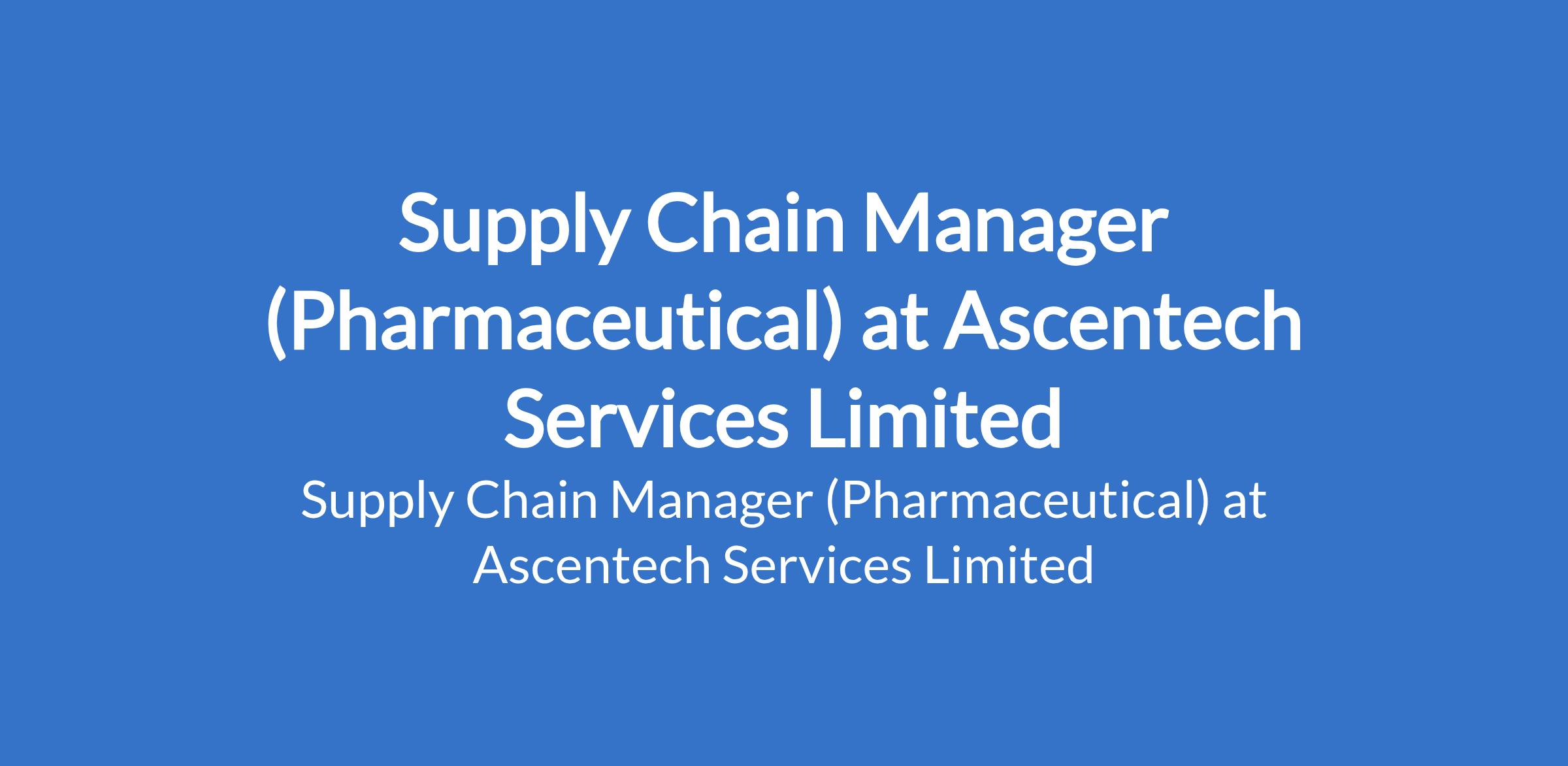 Ascentech Services Limited is recruiting to fill the position of: Supply Chain Manager (Pharmaceutical). The position is located in Calabar, Cross River State. Salary: N500,000 per month. Interested candidates should possess a Bachelors Degree in Supply Chain, Engineering, Business, or related fields with 6+ years of supply chain experience, including 3+ years in a management role within pharmaceutical or FMCG.