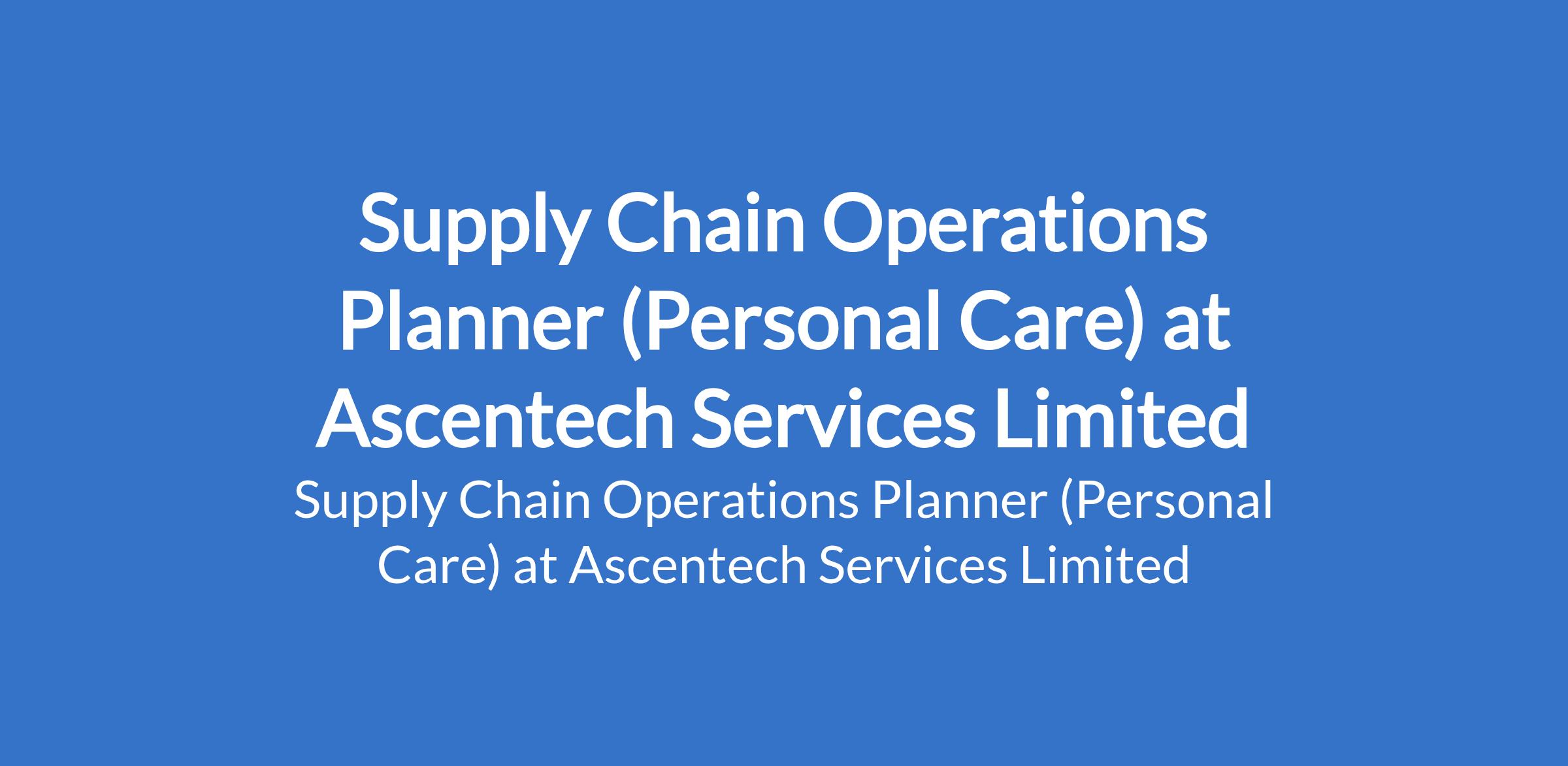 Ascentech Services Limited is recruiting to fill the position of: Supply Chain Operations Planner (Personal Care). The position is located in Ikeja, Lagos State. Salary: N600,000 - N750,000 monthly. Interested candidates should possess a Bachelor's Degree in a related field with 35 years experience in FMCG Supply Chain Operations.