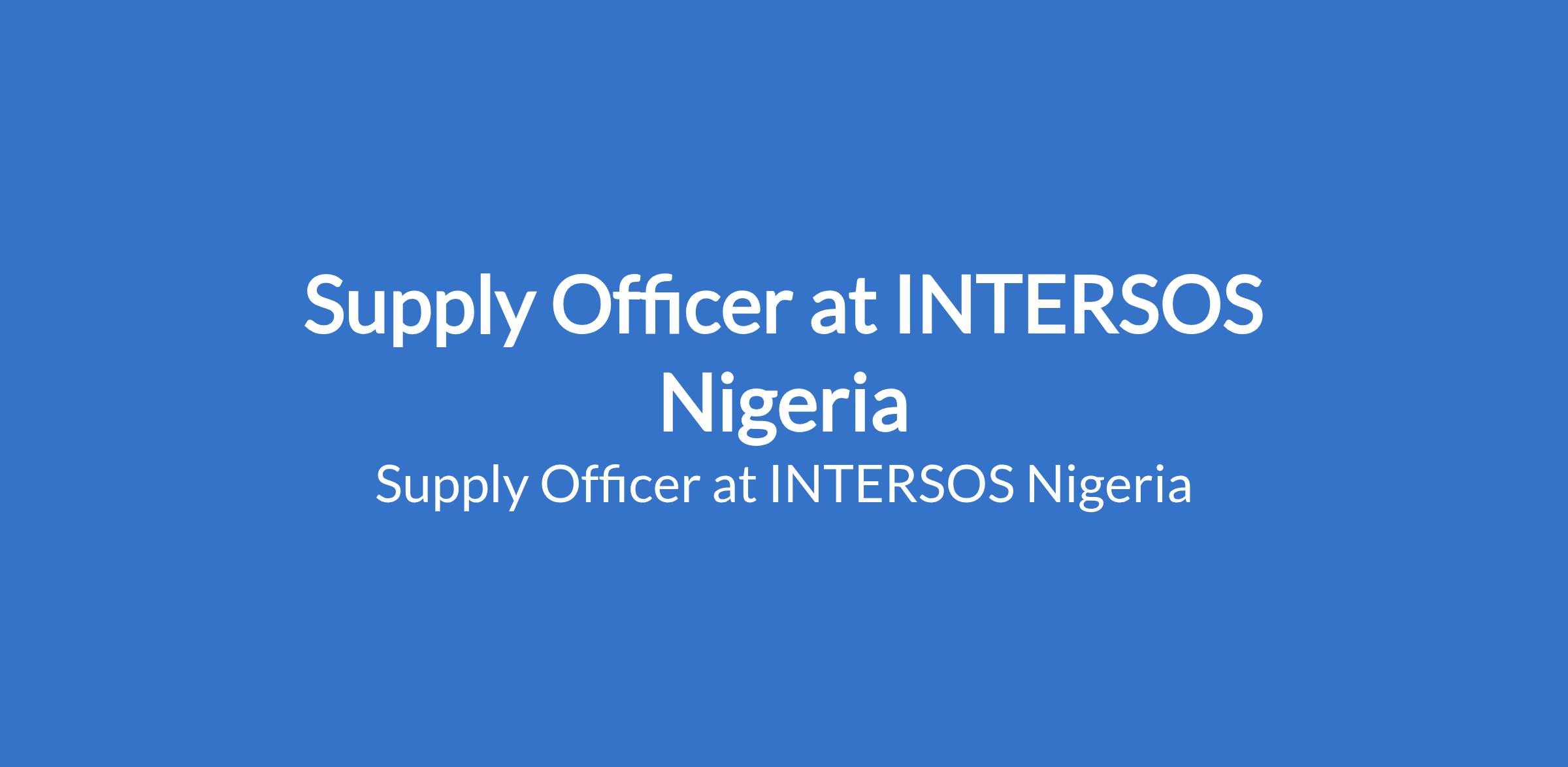 INTERSOS Nigeria is recruiting to fill the position of: Supply Officer. The Position is located in Maiduguri, Borno State. Interested candidates should possess relevant qualifications with 2 years of proven experience in managing supply and purchasing activities in NGOs.