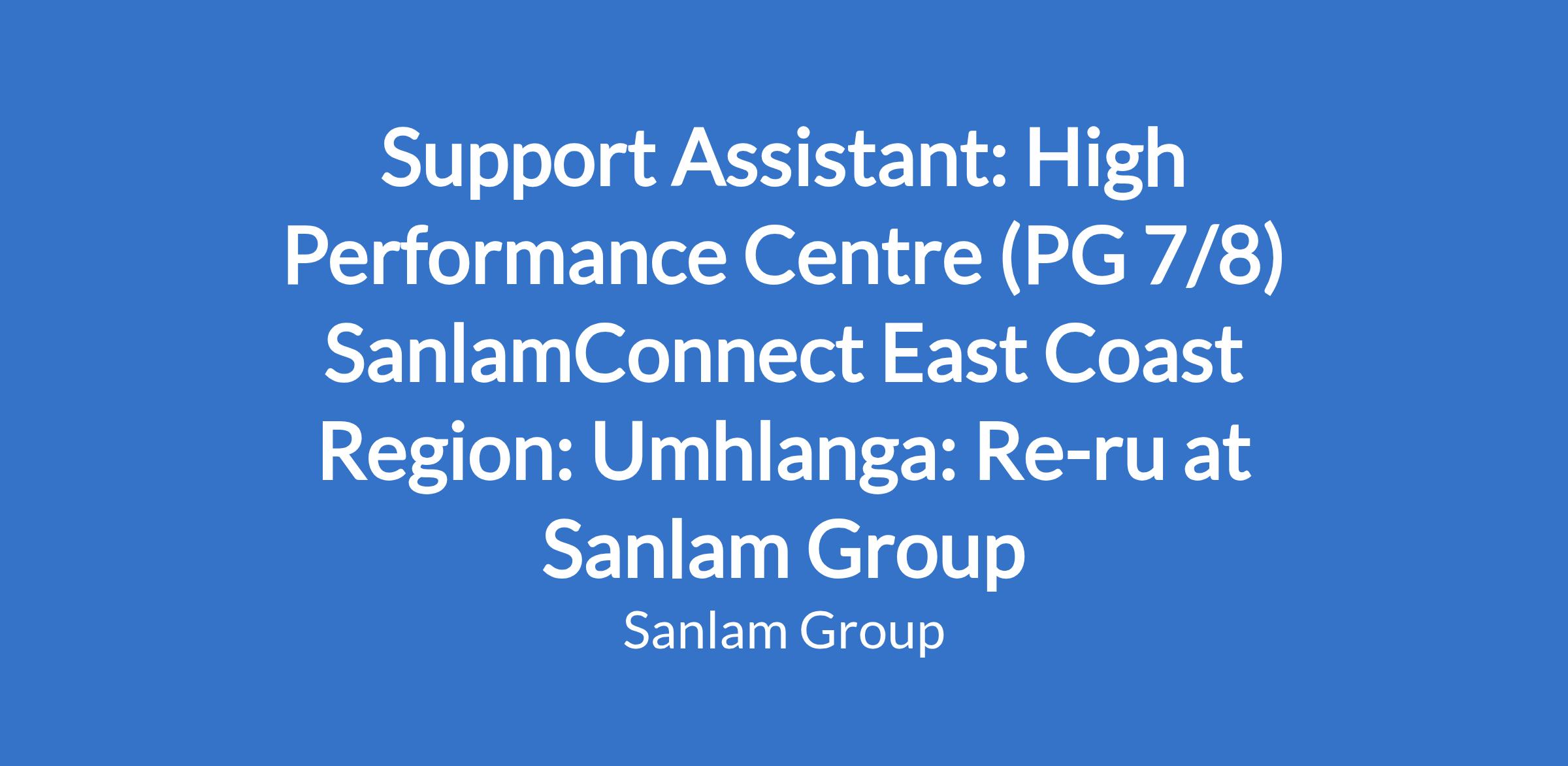 Support Assistant: High Performance Centre (PG 7/8) SanlamConnect East Coast Region: Umhlanga: Re-ru at Sanlam Group