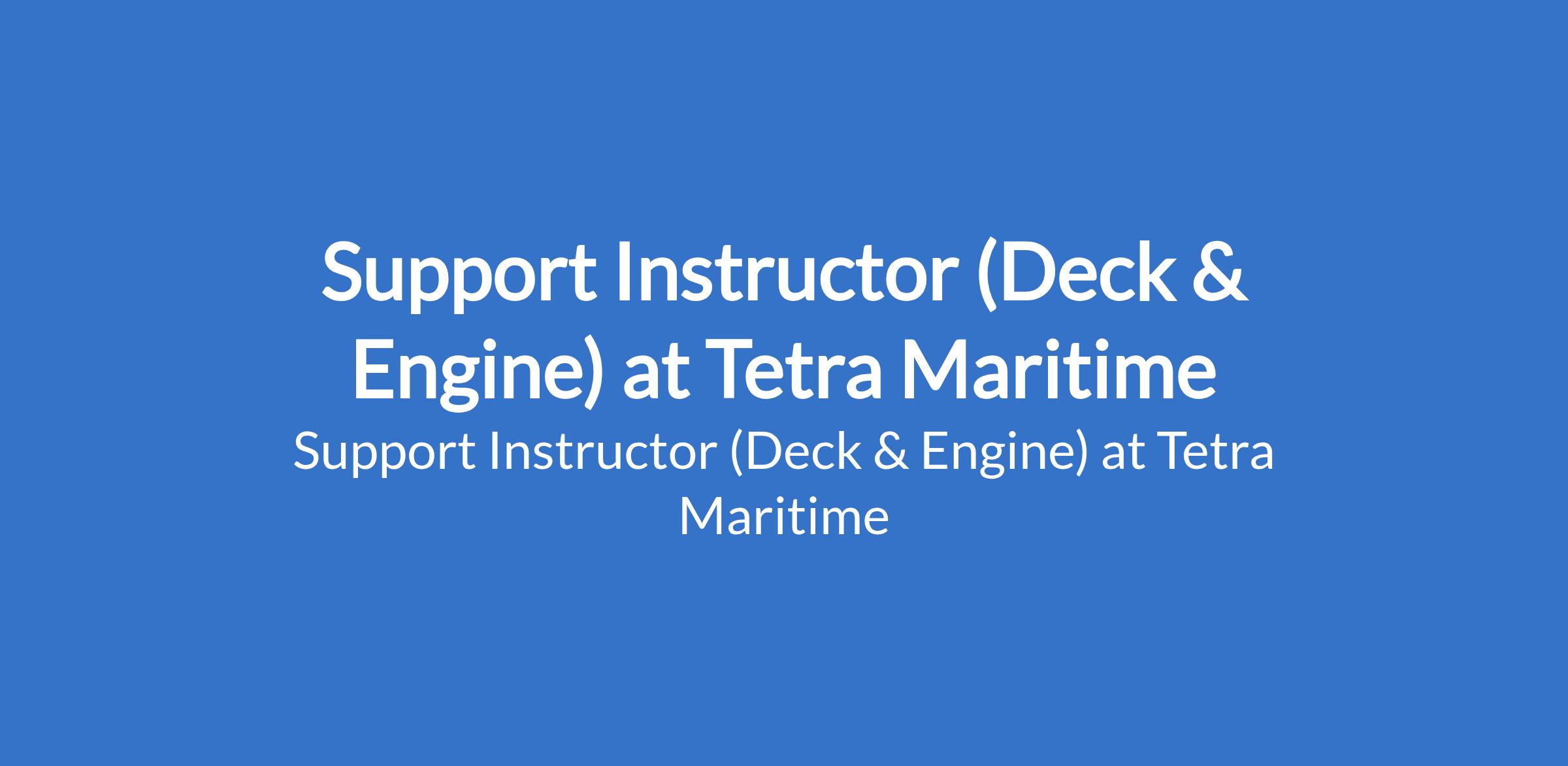 Tetra Maritime is recruiting to fill the position of: Support Instructor (Deck & Engine). The position is located in Lagos State. Interested candidates should possess Valid STCW certifications for Able Seafarer Deck / Engine and oil / chemical tanker endorsements, with a minimum of 7 years sea-going experience as a Bosun / Able Seafarer / Motorman/ Fitter (deck or engine) on board an ocean-going ship.