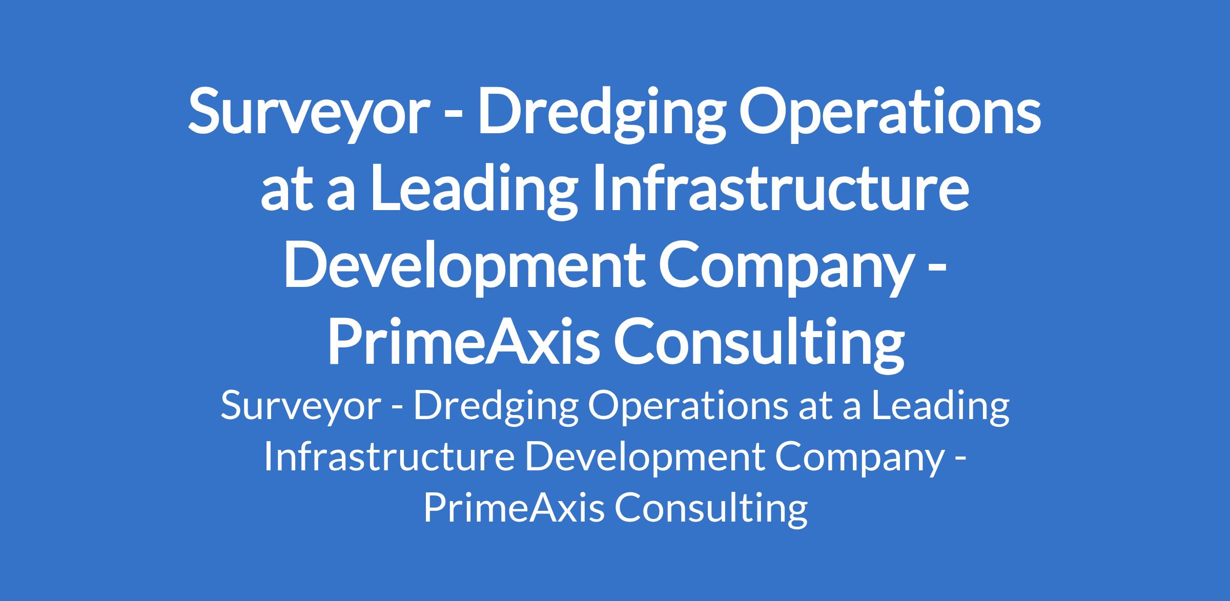 PrimeAxis Consulting - Our client, a leading infrastructure development company is recruiting to fill the position of: Surveyor - Dredging Operations. The position is located in Port Harcourt, Rivers State. Interested candidates should possess a Bachelors Degree in Surveying, Geomatics, or a related discipline with a minimum of 5 years hydrographic surveying experience, preferably within dredging or marine construction projects.