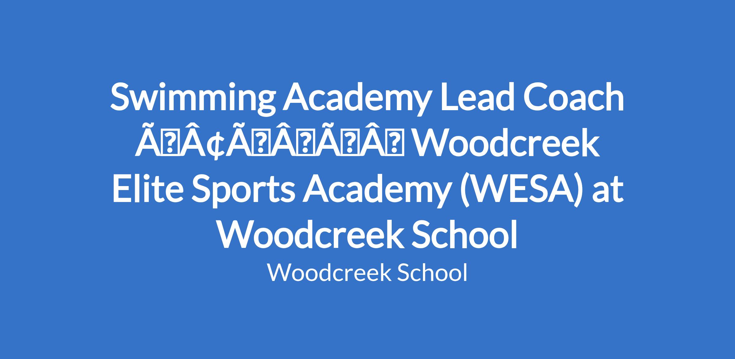 Swimming Academy Lead Coach âÃÂàWoodcreek Elite Sports Academy (WESA) at Woodcreek School