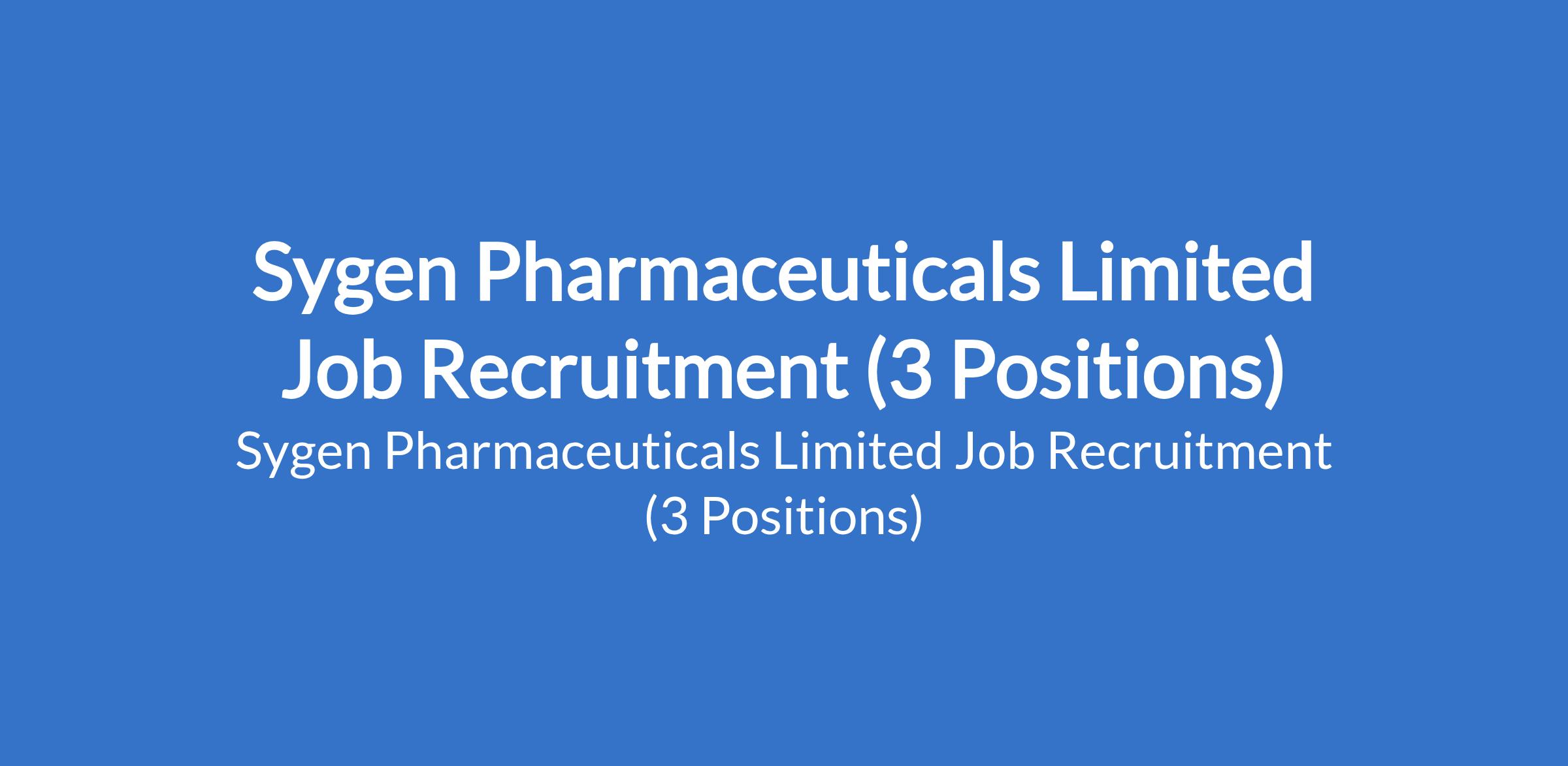 Sygen Pharmaceuticals Limited Job Recruitment (3 Positions)
