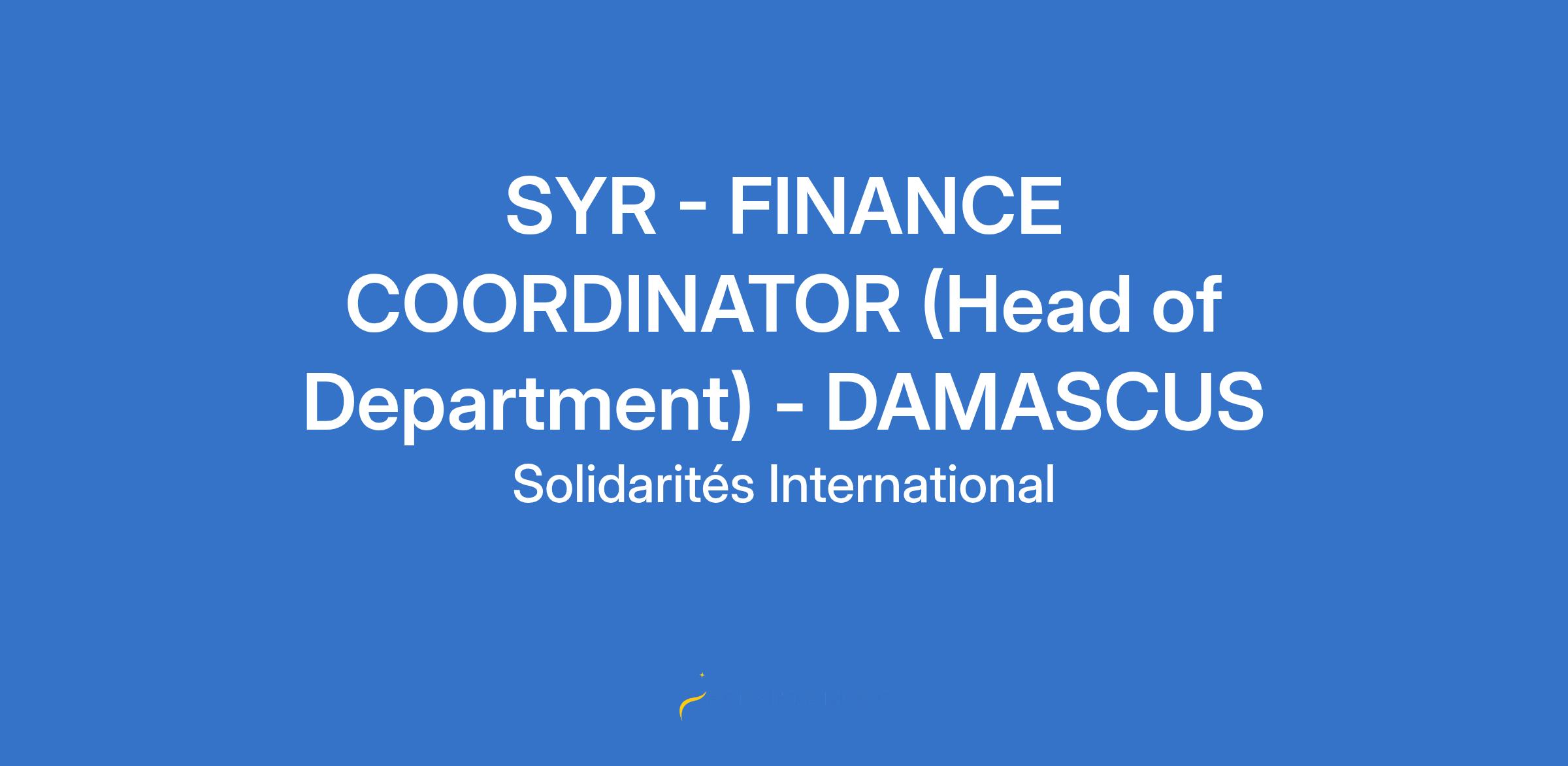 Since regime's change, SI is redefining it operational model as well as well as its geographical scope and programmatic priorities. The organizational set up is being deeply reviewed with a Damascus-based coordination office, the reshaping of the base level structure. Assessments are being carried out in new areas including rural Damascus, South, Aleppo and Hama and new partnerships are being envisioned. This is to ensure relevance and efficiency, maximize impact through secured access and more generally ensuring the mission remains fit for purpose in a quickly evolving environment. And this on-going transformation will be at the core of the new CD responsibilities.